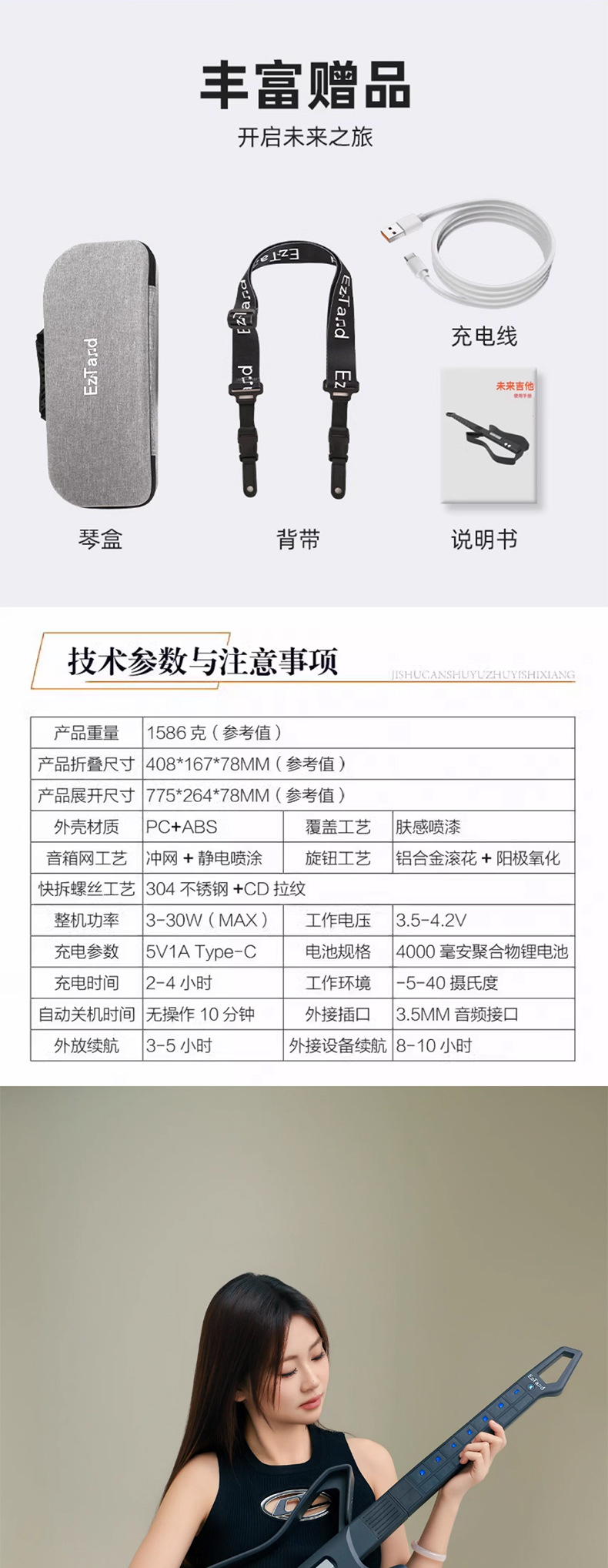 EzTand X1Pro 미래 기타 스트링리스 기타 퓨전 반주 스마트 일렉트릭 기타 자동 블록 플레이 고통