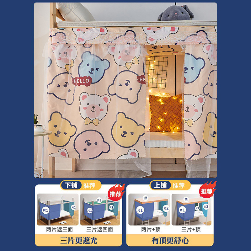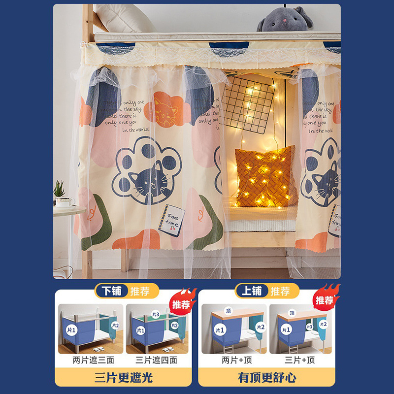 대학생을위한 상부 및 하부 침대 커튼 침실 침대 커튼 커튼 커튼 기숙사 커튼 원사 통합 공주 바람 침대 커튼스토어 가기
