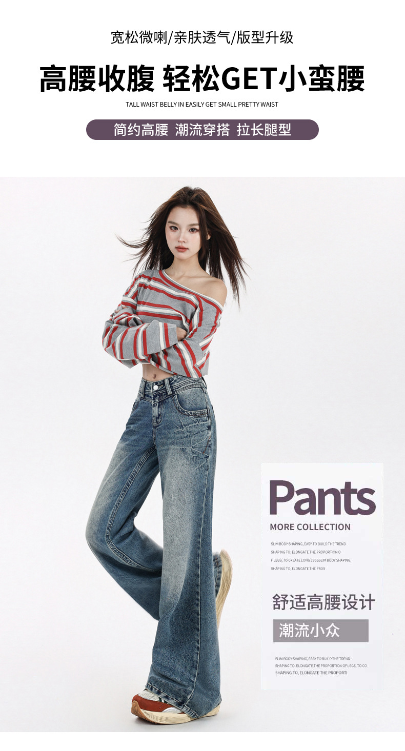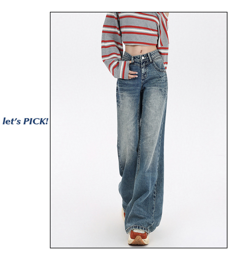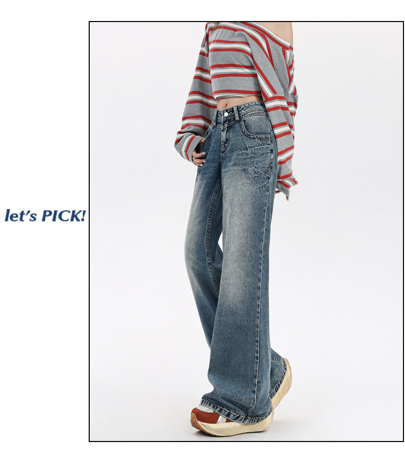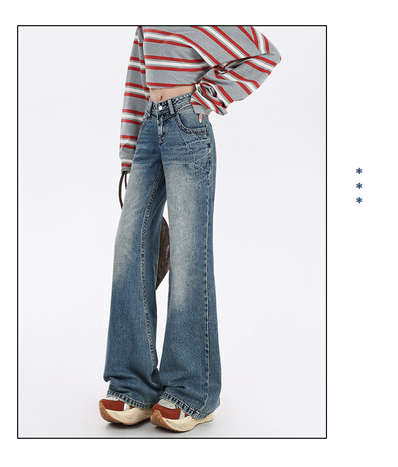미국식 레트로 마이크로 라르 청바지 여성의 2025 년 봄 새로운 도착 균열 낮은 허리 느슨한 딥 스트레이트 플레어 바지스토어 가기