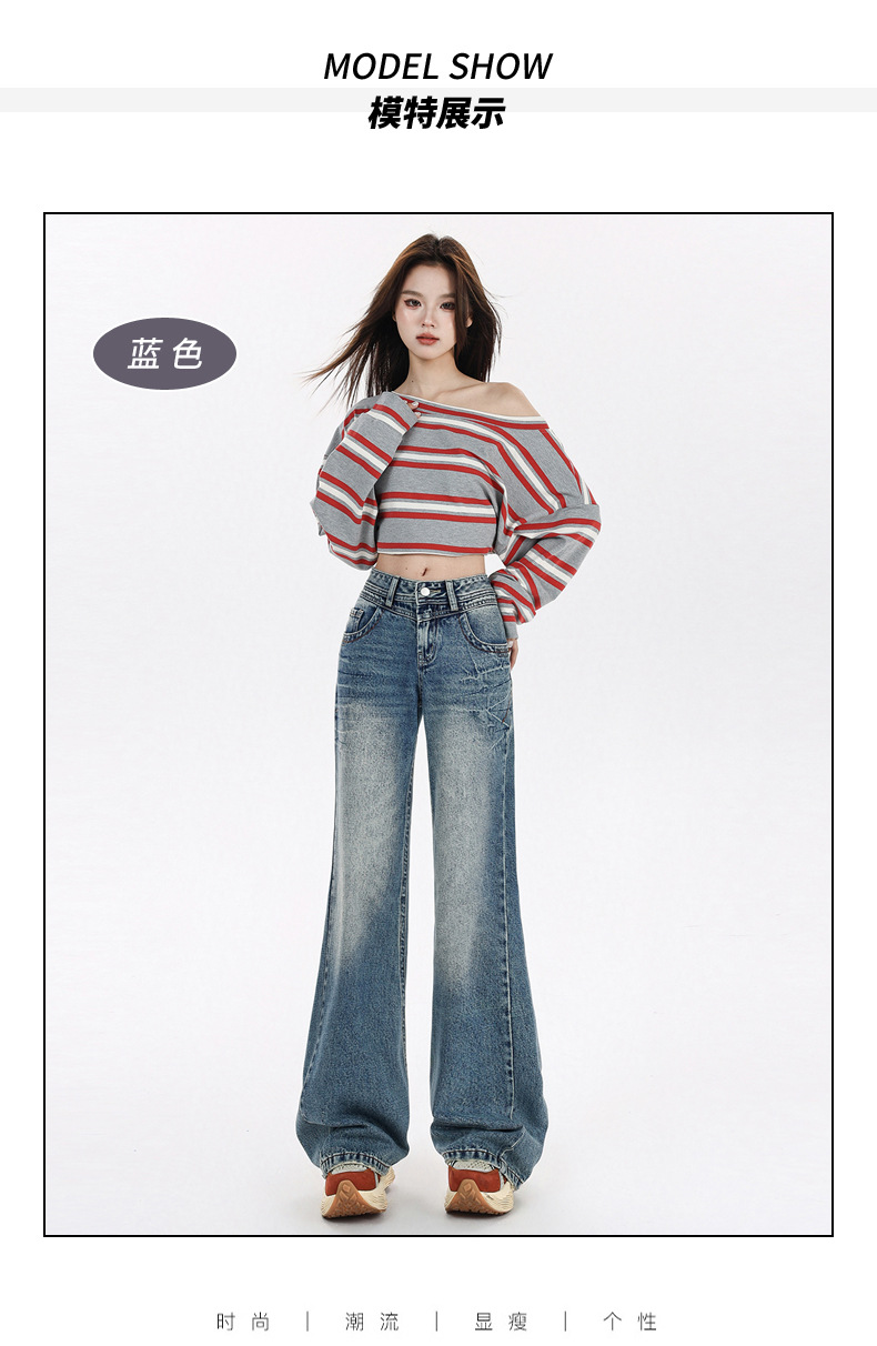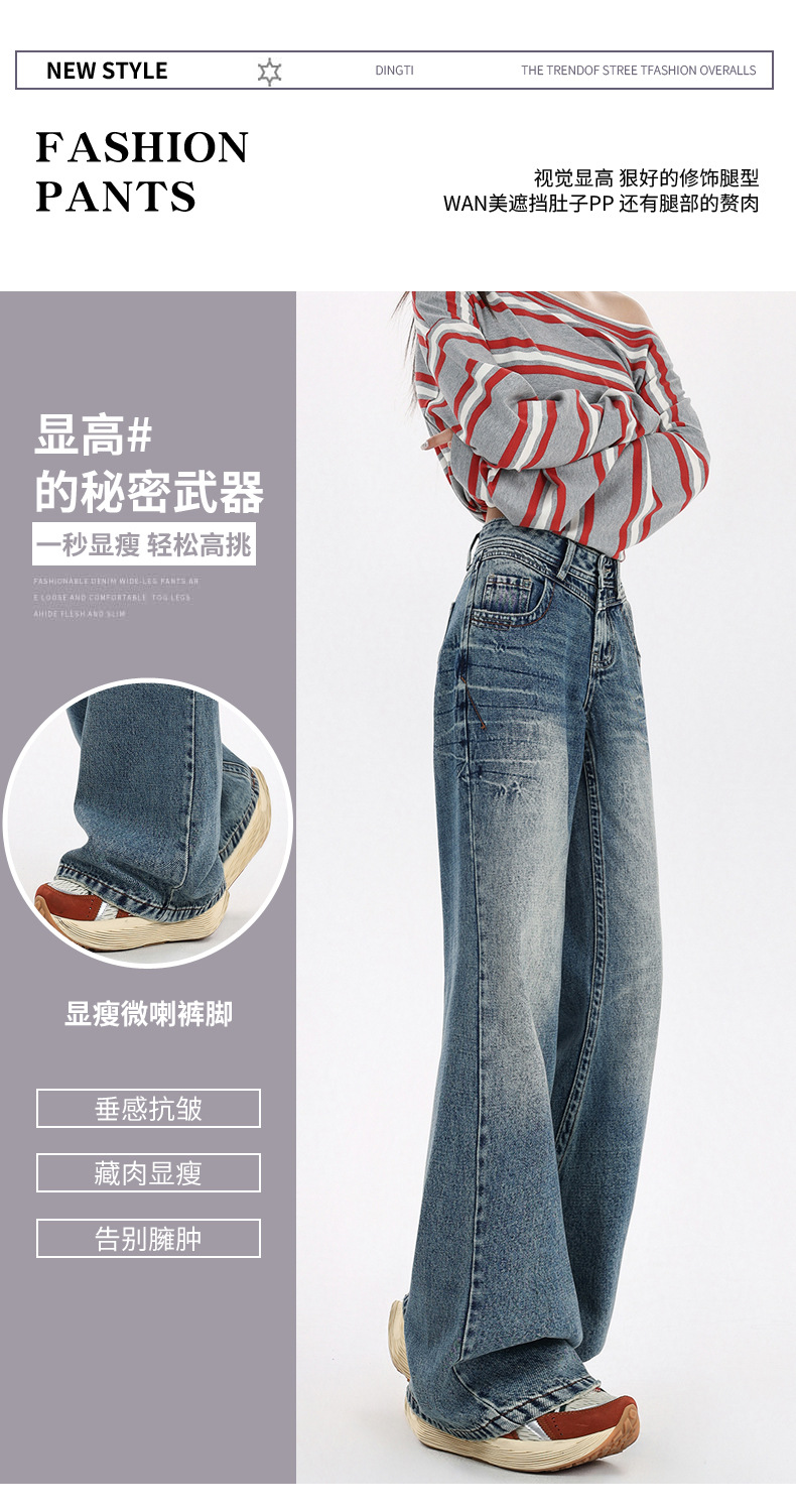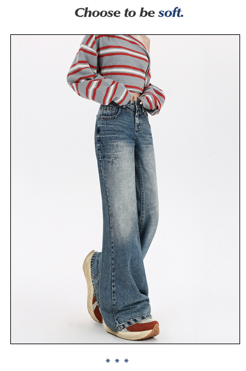 미국식 레트로 마이크로 라르 청바지 여성의 2025 년 봄 새로운 도착 균열 낮은 허리 느슨한 딥 스트레이트 플레어 바지스토어 가기