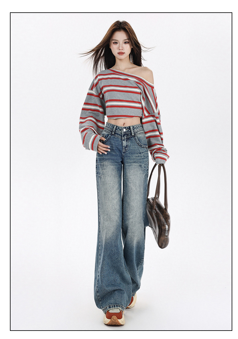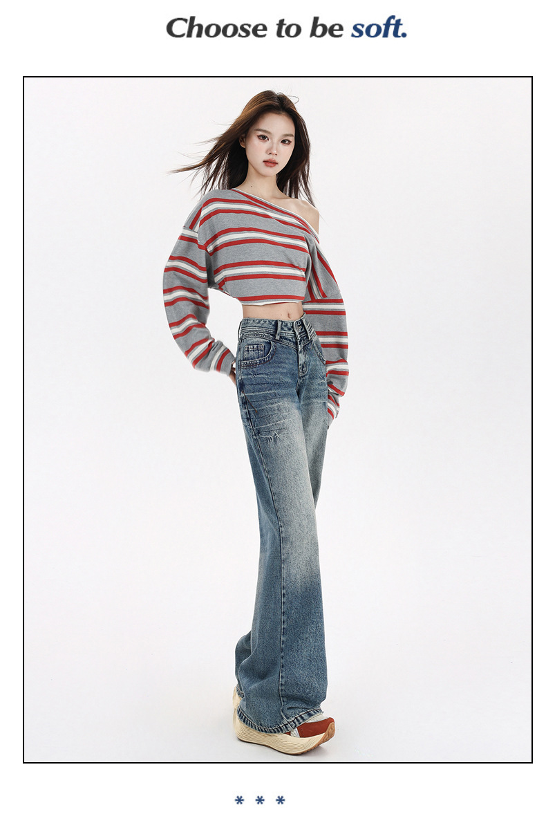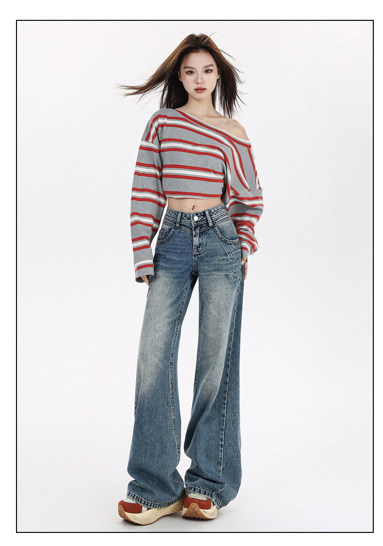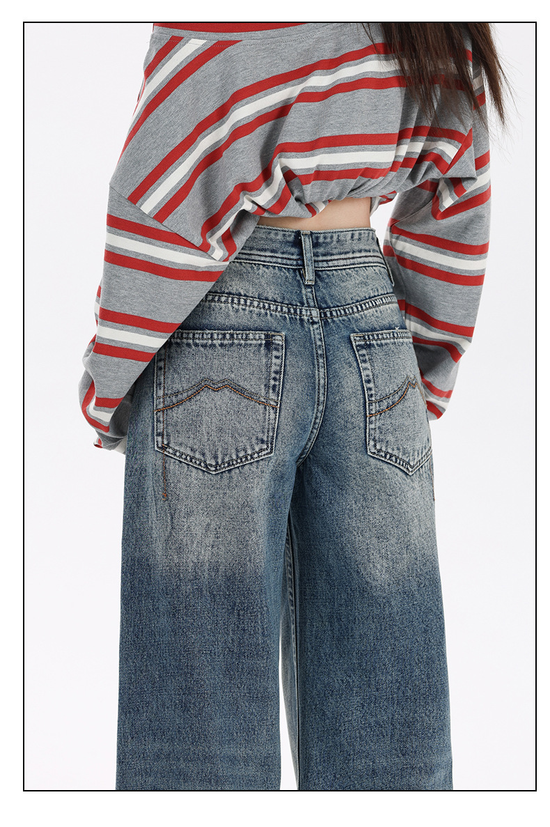 미국식 레트로 마이크로 라르 청바지 여성의 2025 년 봄 새로운 도착 균열 낮은 허리 느슨한 딥 스트레이트 플레어 바지