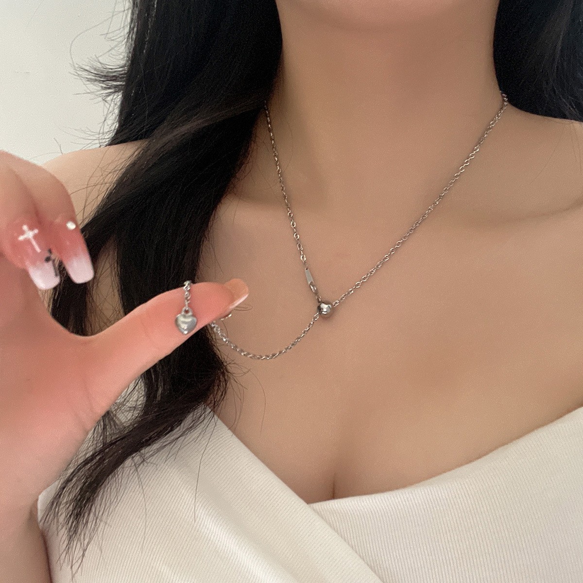 간단한 디자인 드로잉 사랑 목걸이 여성의 작은 신선한 패션 틈새 트렌디 한 콜라본 체인 달콤한 쿨 올 매치 목걸이