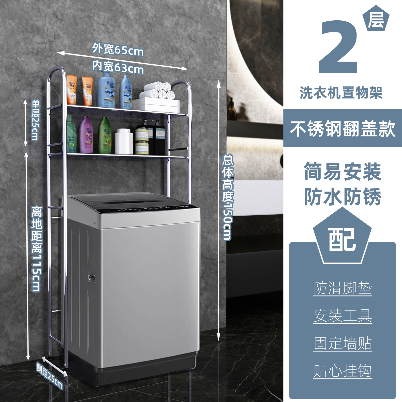 • 스테인레스 스틸 플립탑 세탁기 랙 2겹