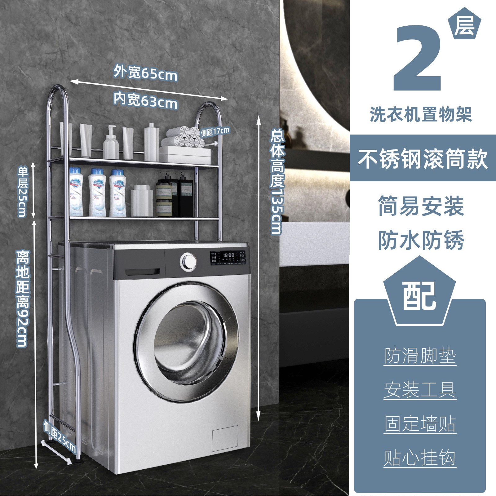• 스테인레스 스틸 드럼 세탁기 랙 2겹