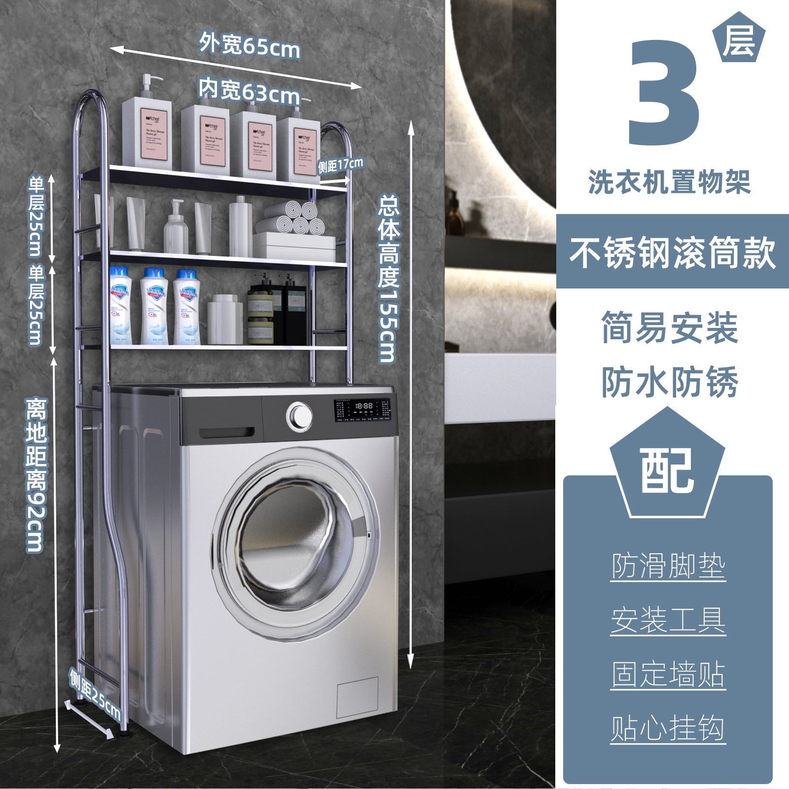 • 스테인레스 스틸 드럼 세탁기 랙 3겹