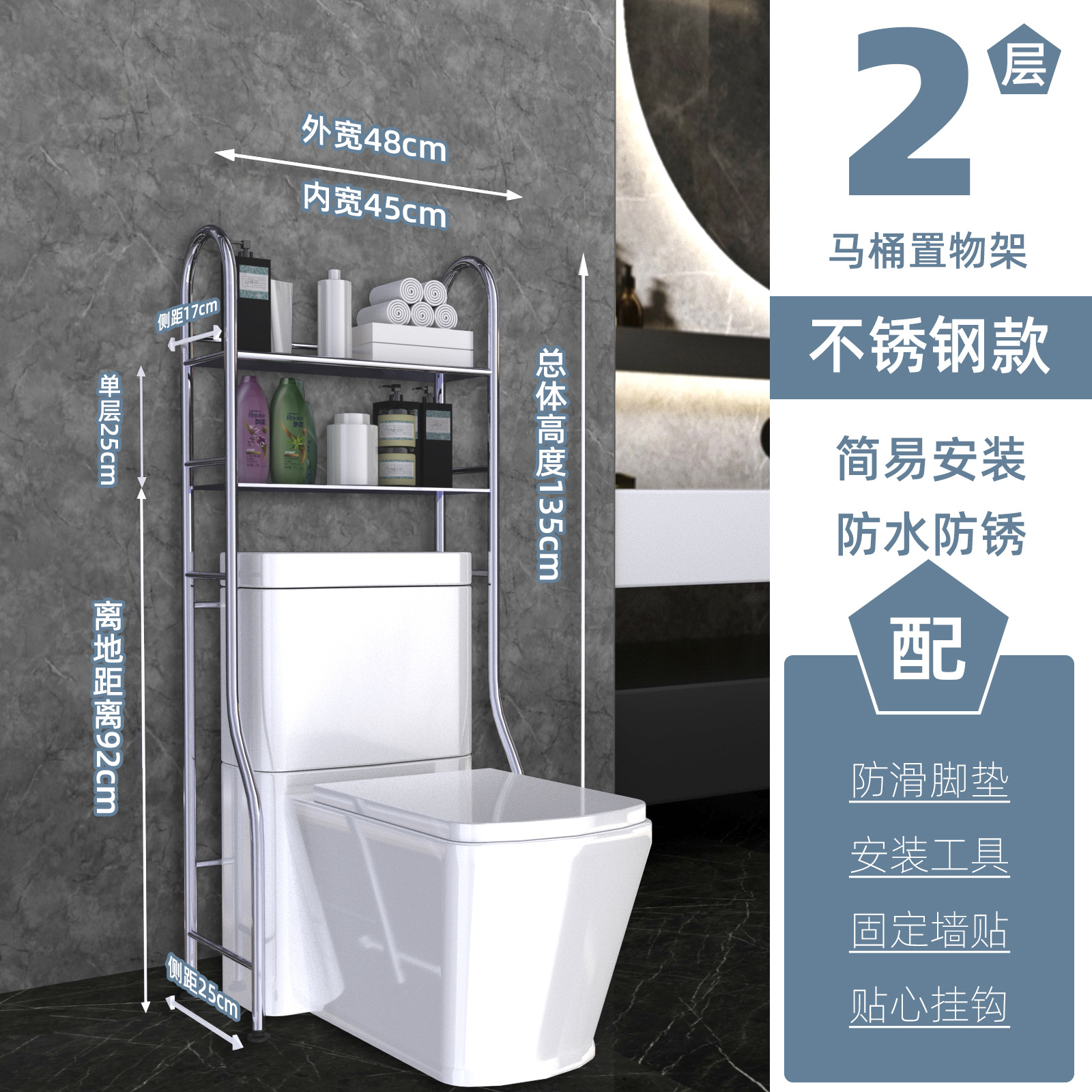 • 스테인레스 스틸 변기 선반 2겹