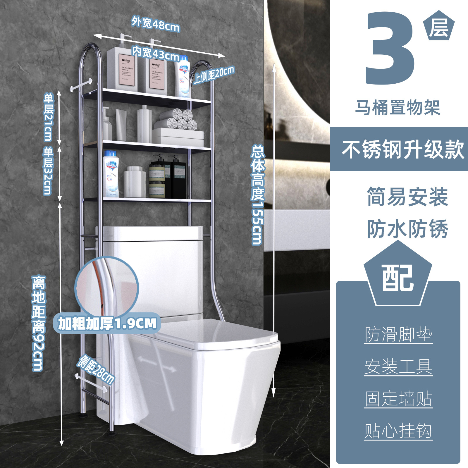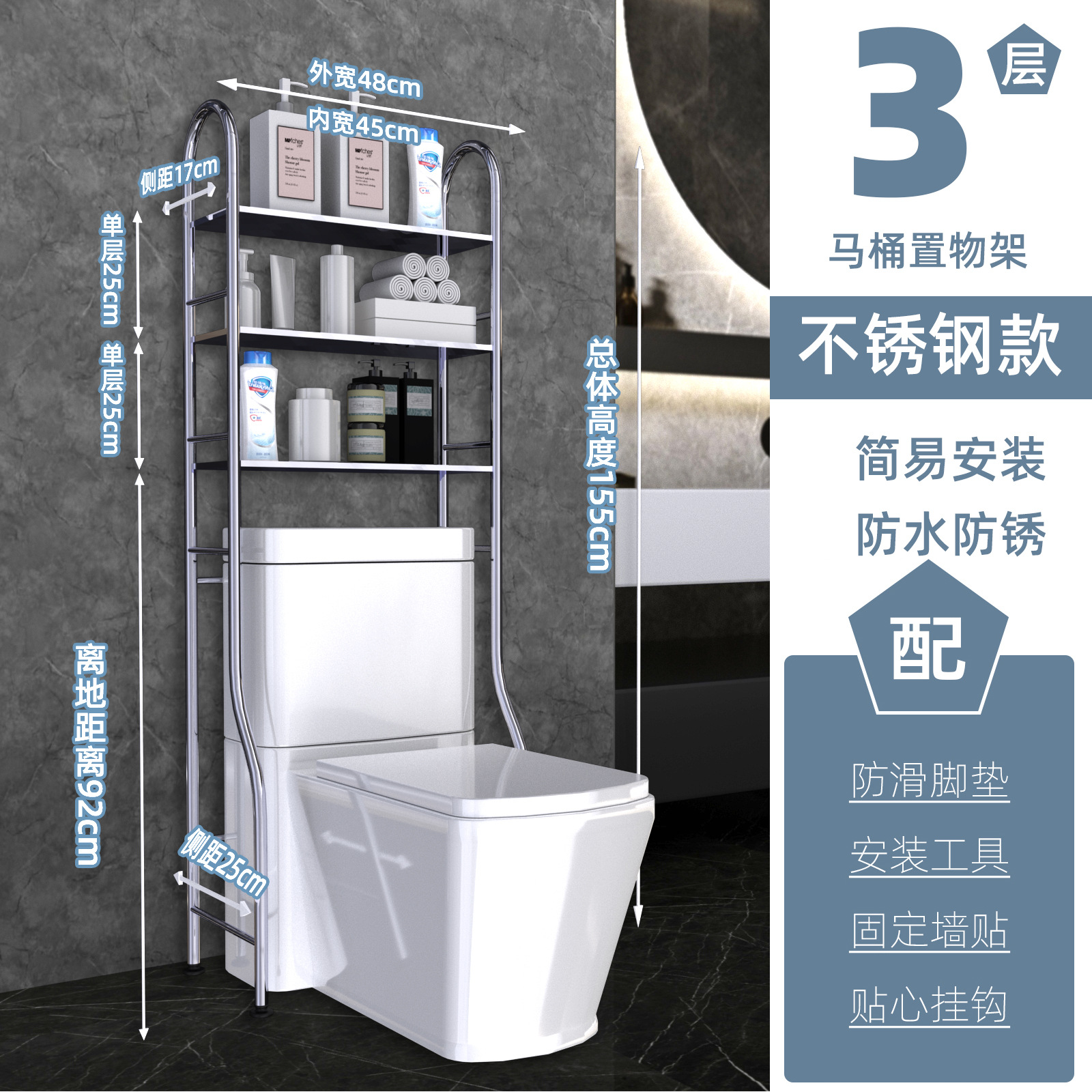 • 스테인레스 스틸 변기 선반 3겹