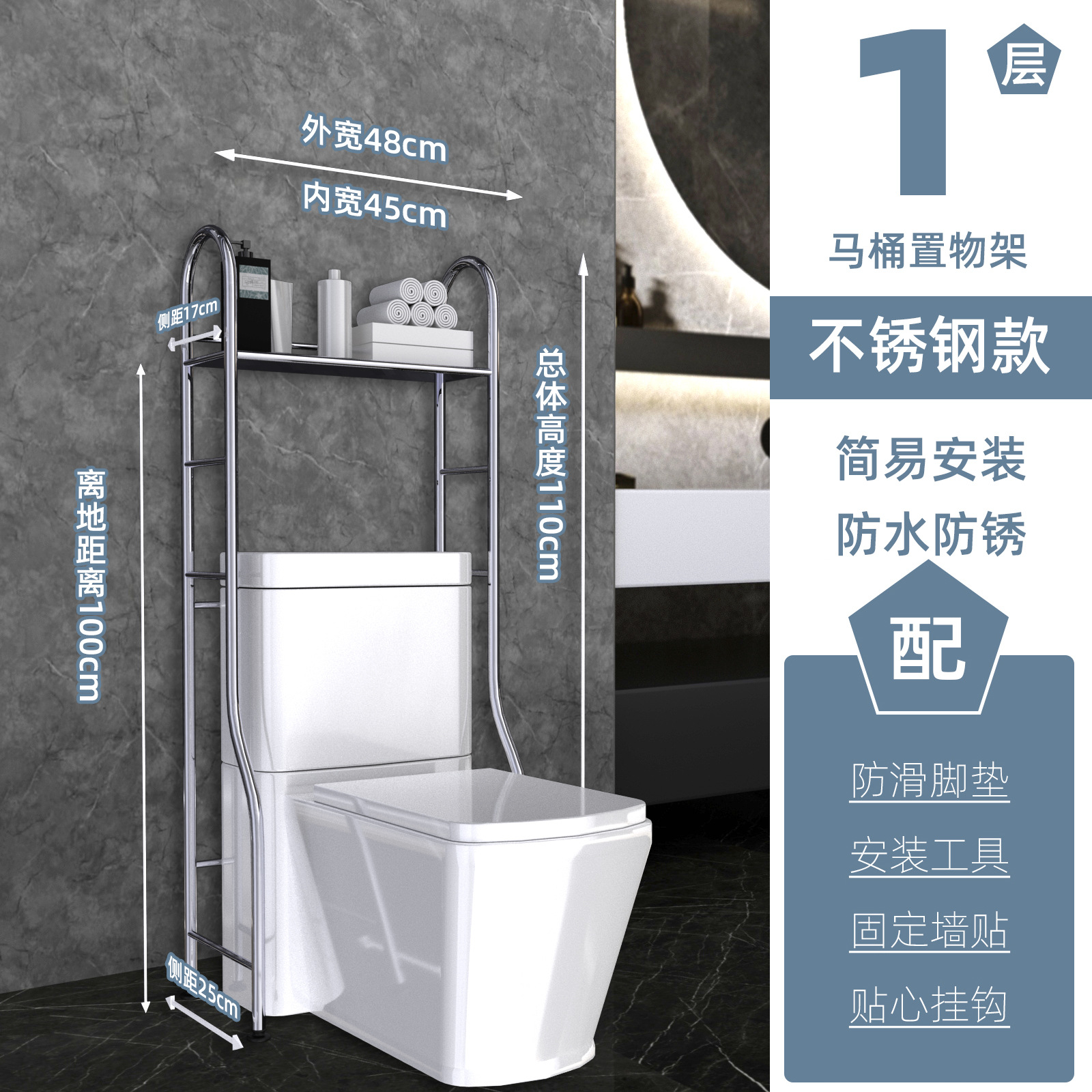 • 스테인레스 스틸 변기 선반 1겹