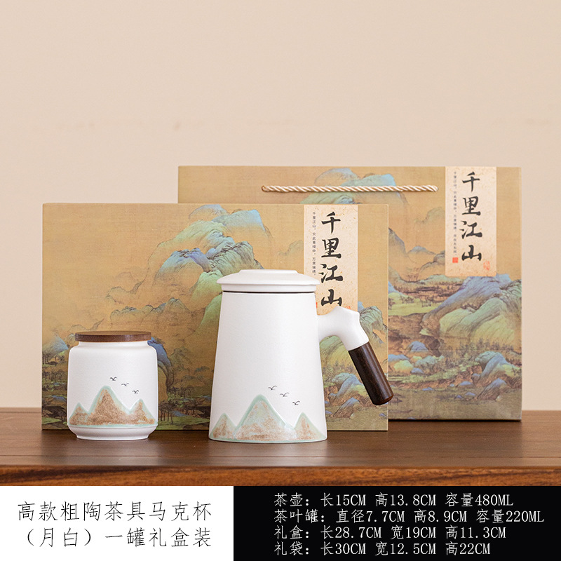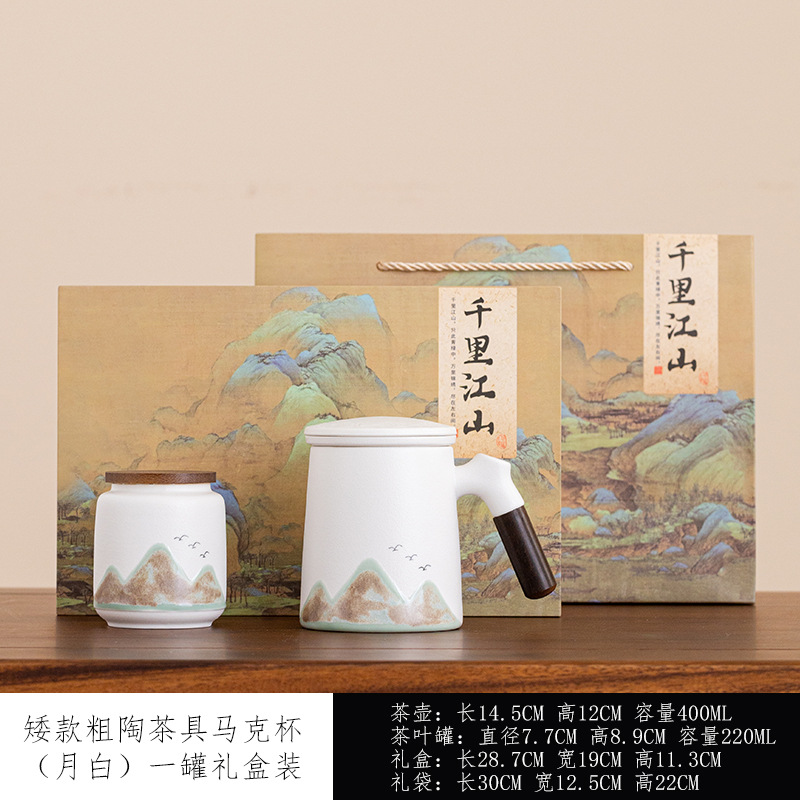 • Jinxiu Shanhe 사무실 컵 + 차 캔 - Yahei (짧은 선물 상자)