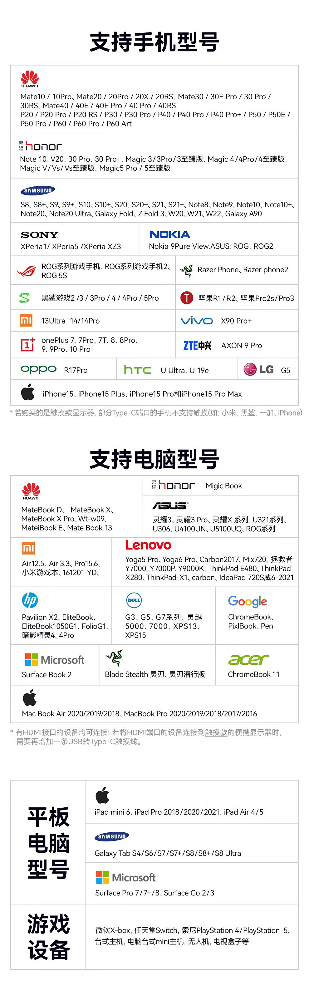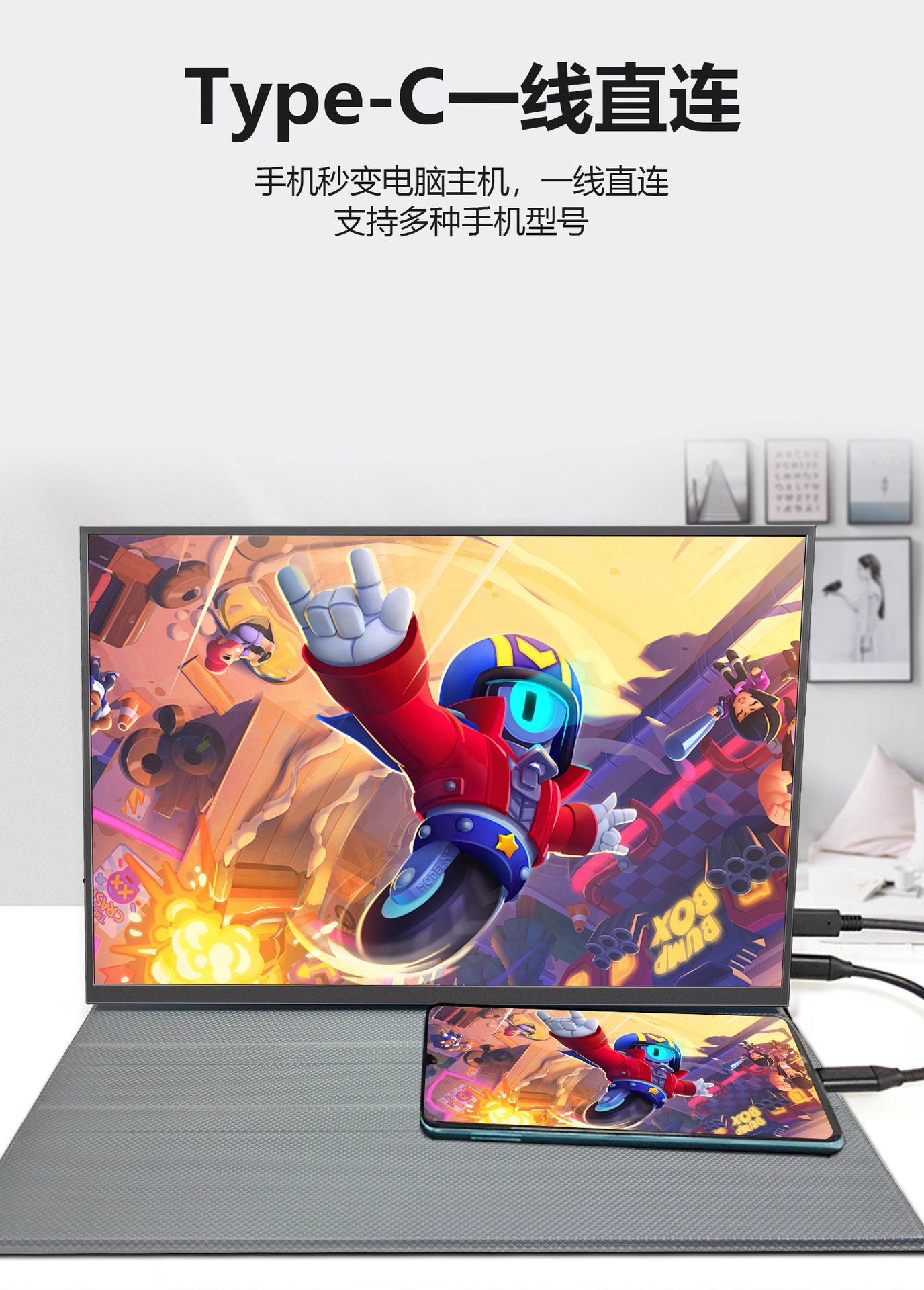 휴대용 디스플레이 14 "/15.6" 울트라 클리어 4K 서브 스크린 전기 경쟁 하이 브러시 144hz 터치 오피스 확장 화면