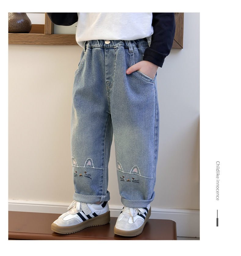 소녀 바지 봄 2025 새로운 스타일 소녀 아기 봄과 가을 어린이 바지 봄 캐주얼 청바지스토어 가기