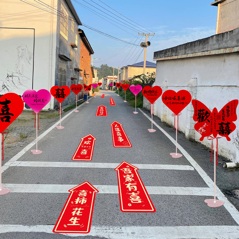 결혼식 도로 표지판 1.2 결혼식 농촌 야외 커뮤니티 길가 결혼식 환영 도로 장식 용품