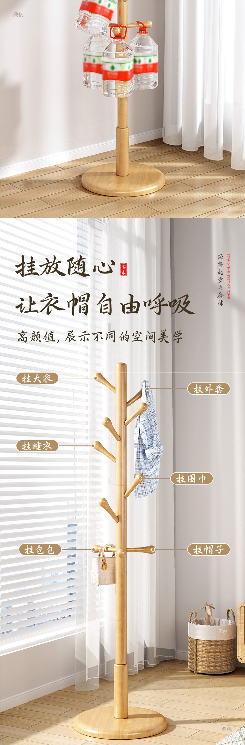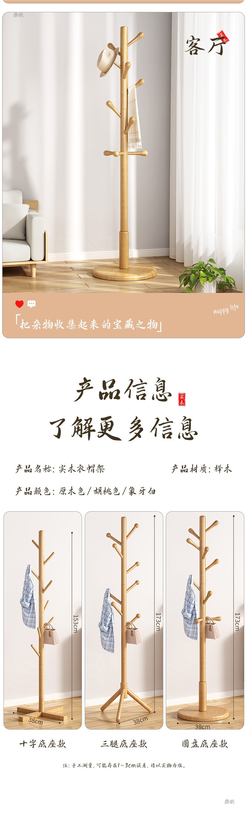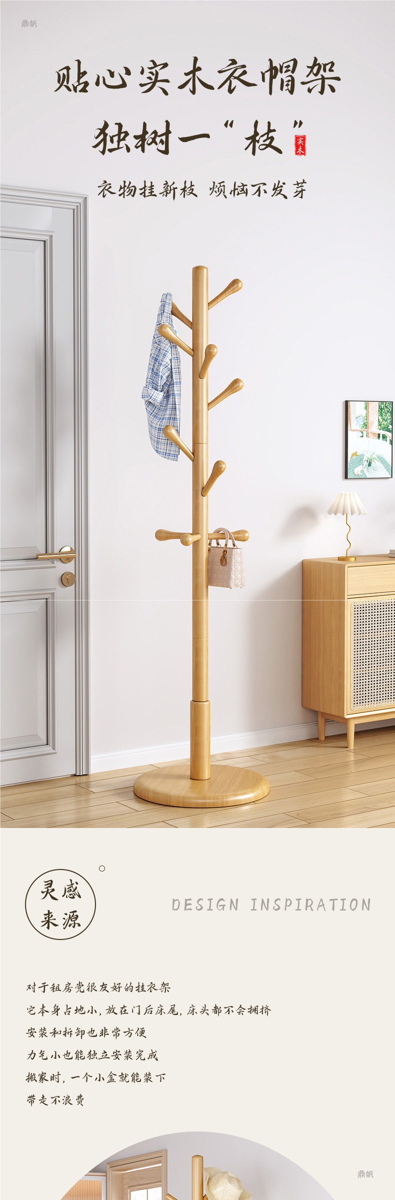 단단한 나무 바닥 코트 랙 걸이 침실 가구 수직 옷걸이 옷 랙 간단한 현대 가방 랙스토어 가기