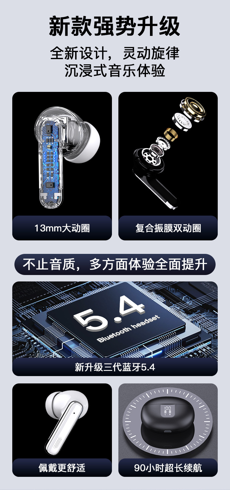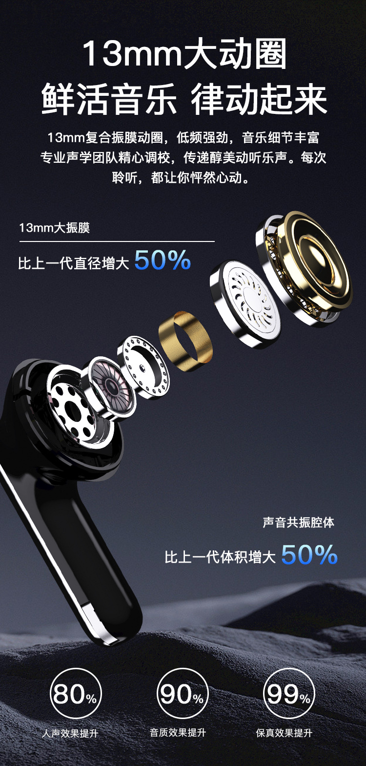 국경을 넘는 인기 상품 듀얼 노이즈 캔슬링 블루투스 이어폰 스포츠 ANC 무선 인이어형 초장시간 배터리 스테레오 AI
