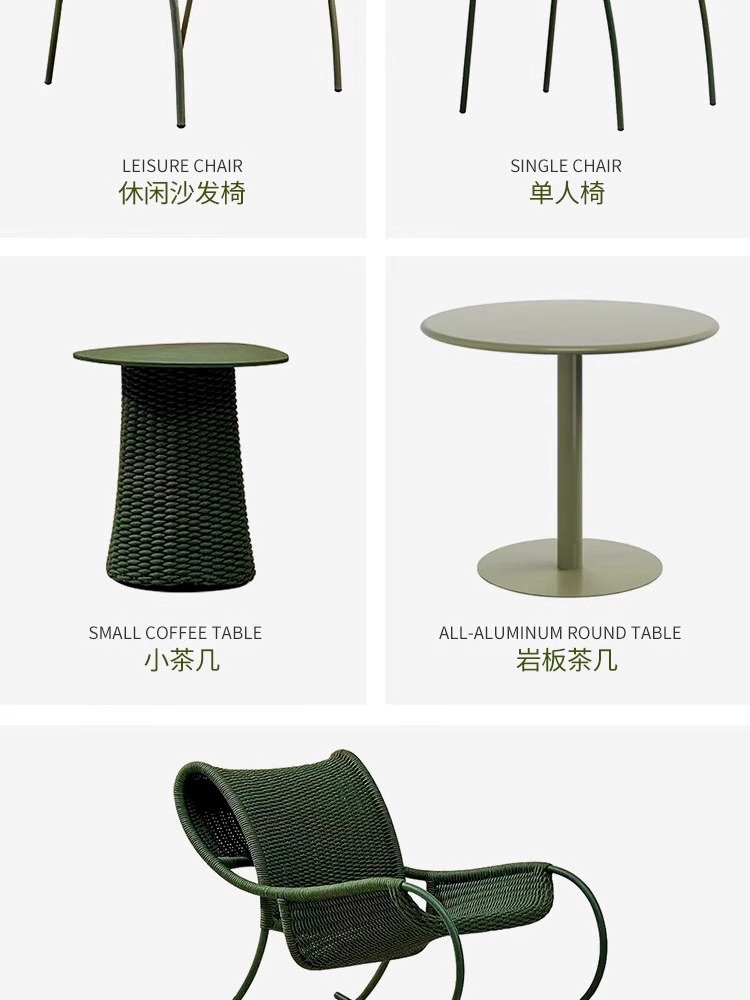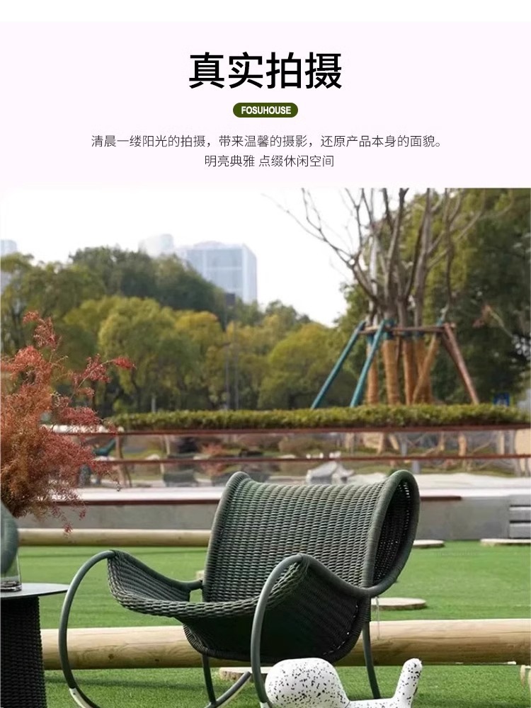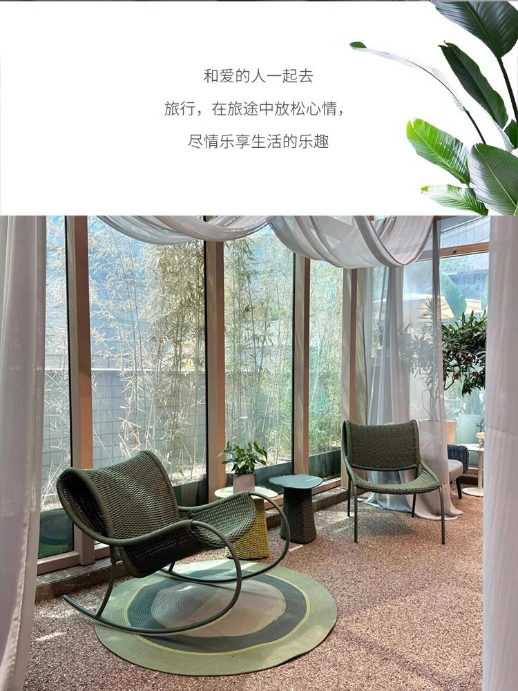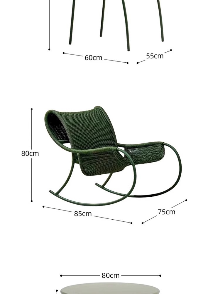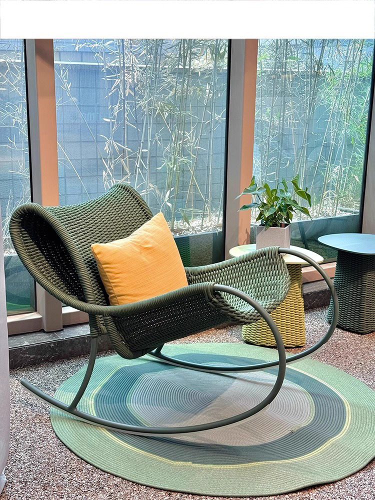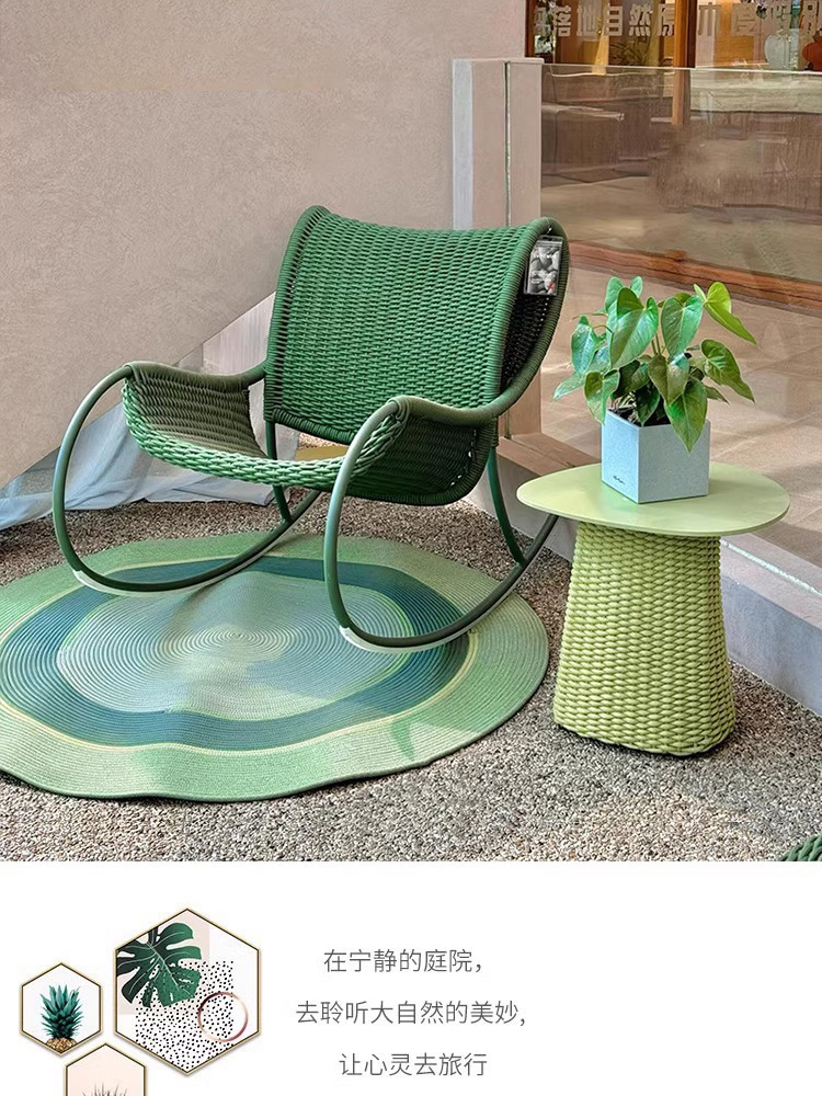야외 안뜰 로프 의자 3피스 소파 의자 빌라 발코니 테라스 흔들의자 레저 의자 등나무 커피 테이블 조합스토어 가기