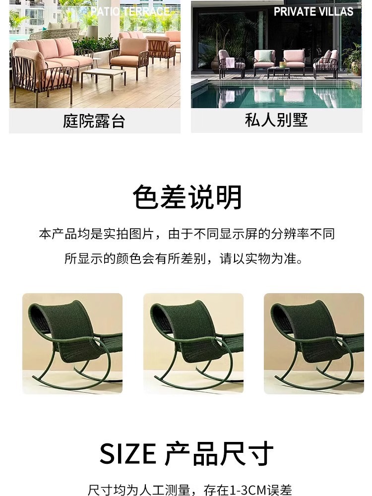 야외 안뜰 로프 의자 3피스 소파 의자 빌라 발코니 테라스 흔들의자 레저 의자 등나무 커피 테이블 조합