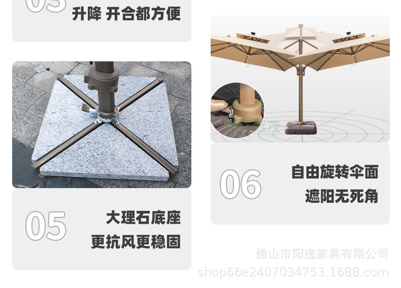 • 60kg 사각 대리석 베이스가 있는 3m 사각 무한 로마우산