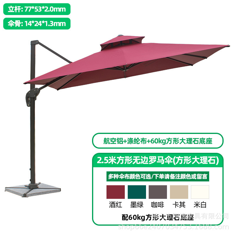 • 60kg 사각 대리석 베이스가 있는 2.5m 사각 무한 로마우산