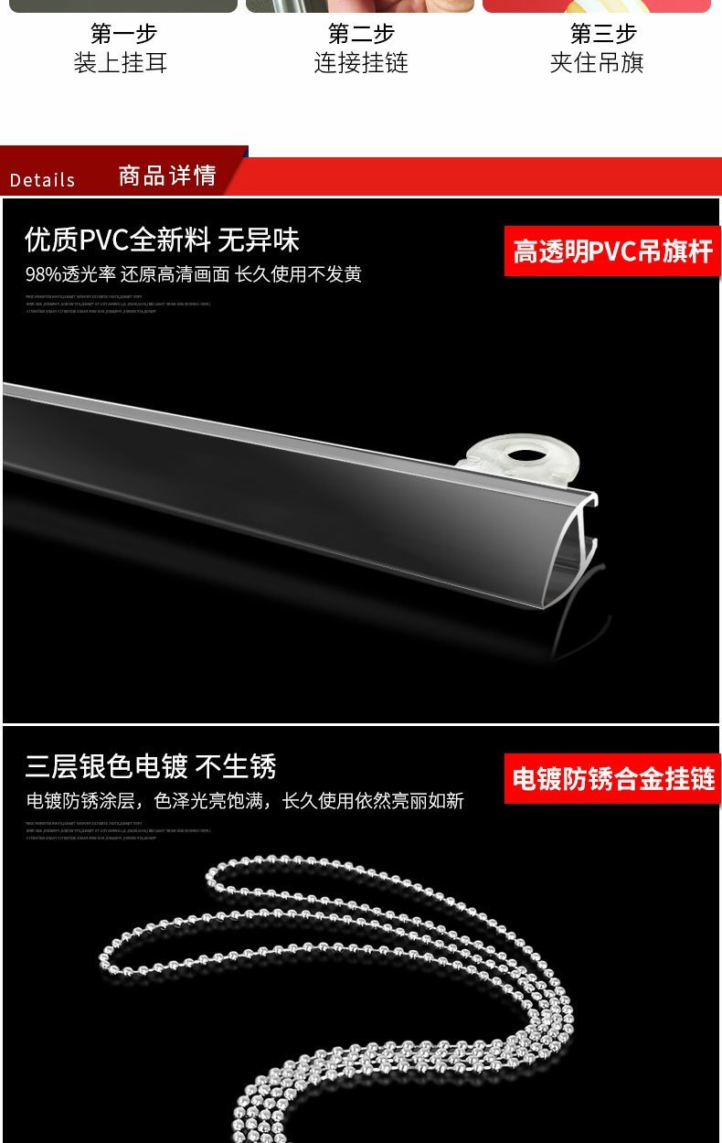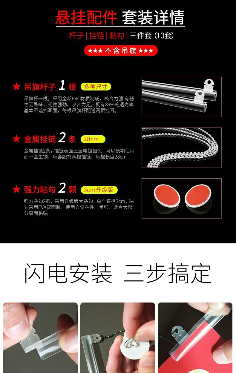Da Li Ri Xi 교수형 깃발 교수형 막대 pvc 포스터 로드 훅 카드 엣지 스트립 팝 광고 클립 교수형 체인 60CM 3 개