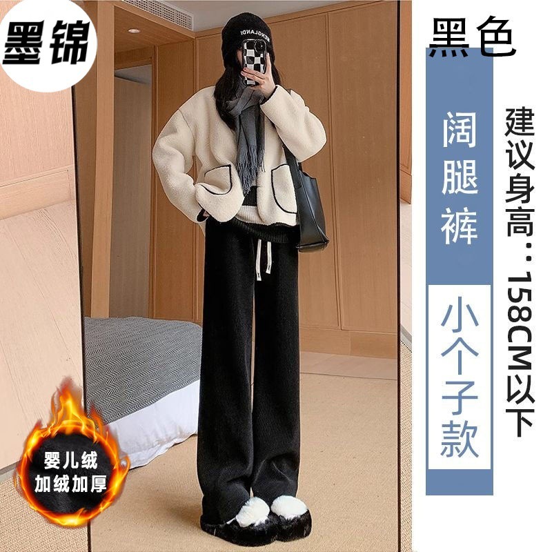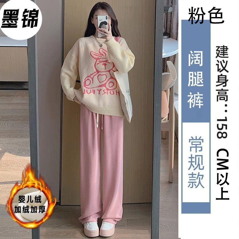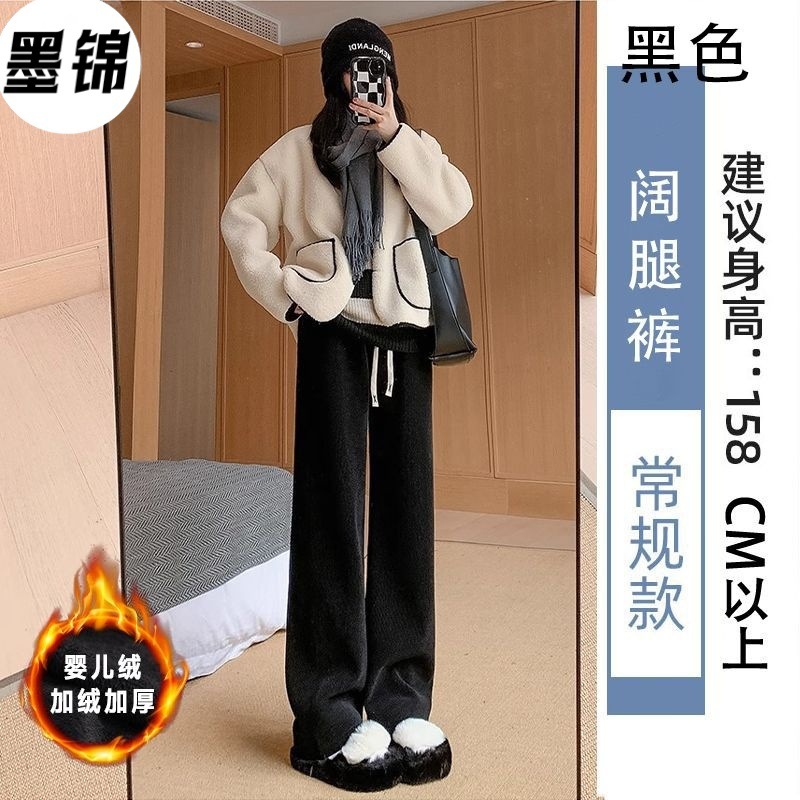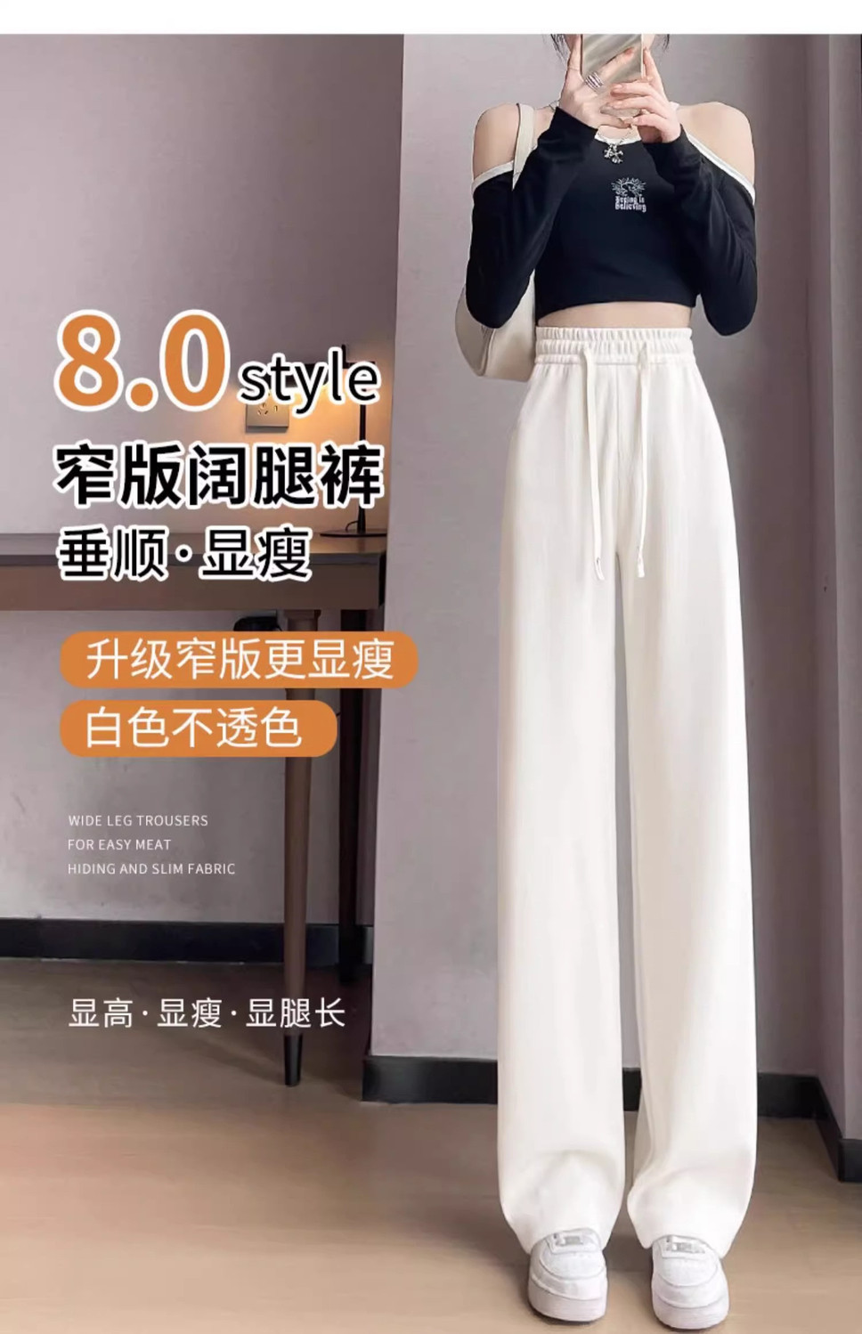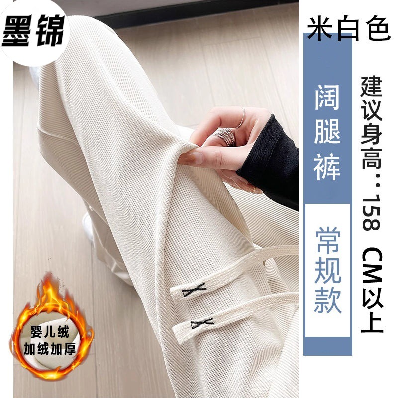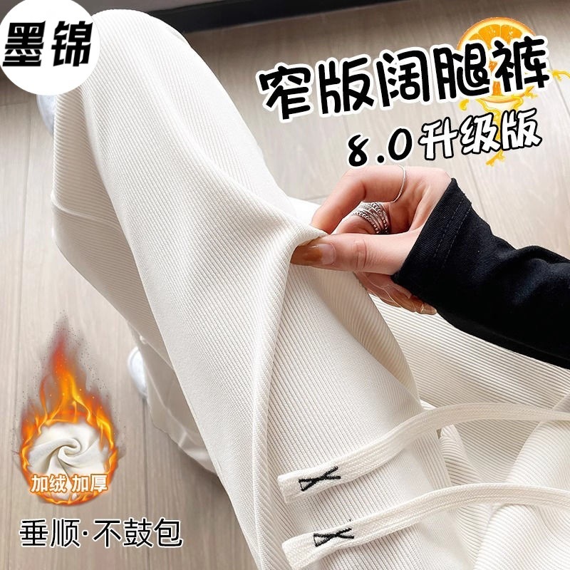 기모 넓은 다리 바지 여자 가을과 겨울 2025 새로운 스타일 작은 좁은 직선 바지 캐주얼 화이트 바지 올매치스토어 가기