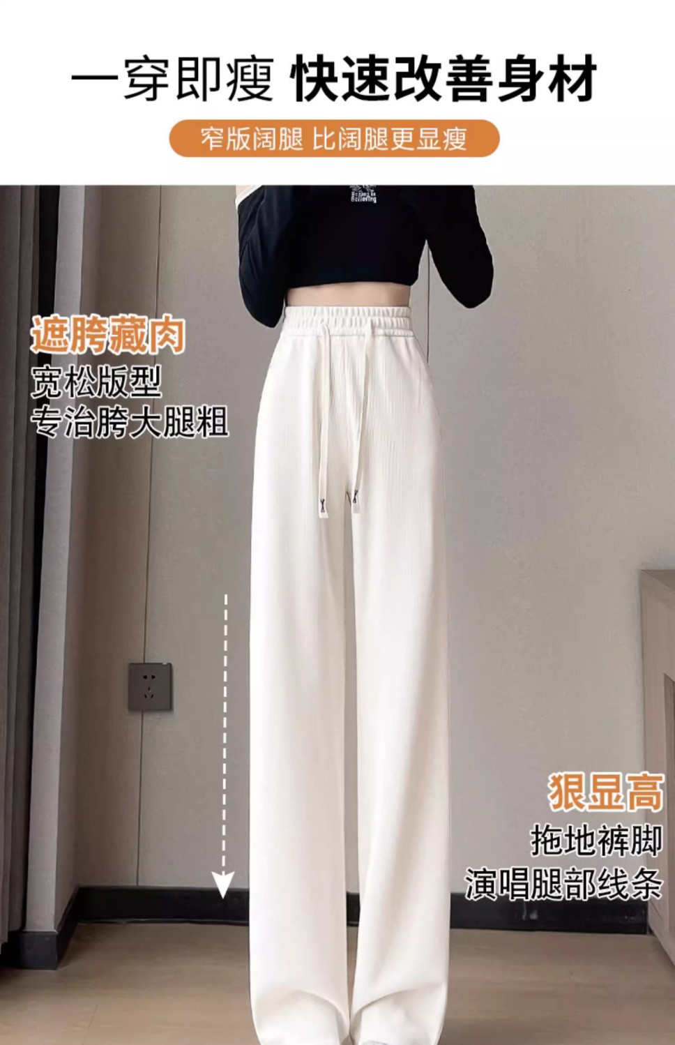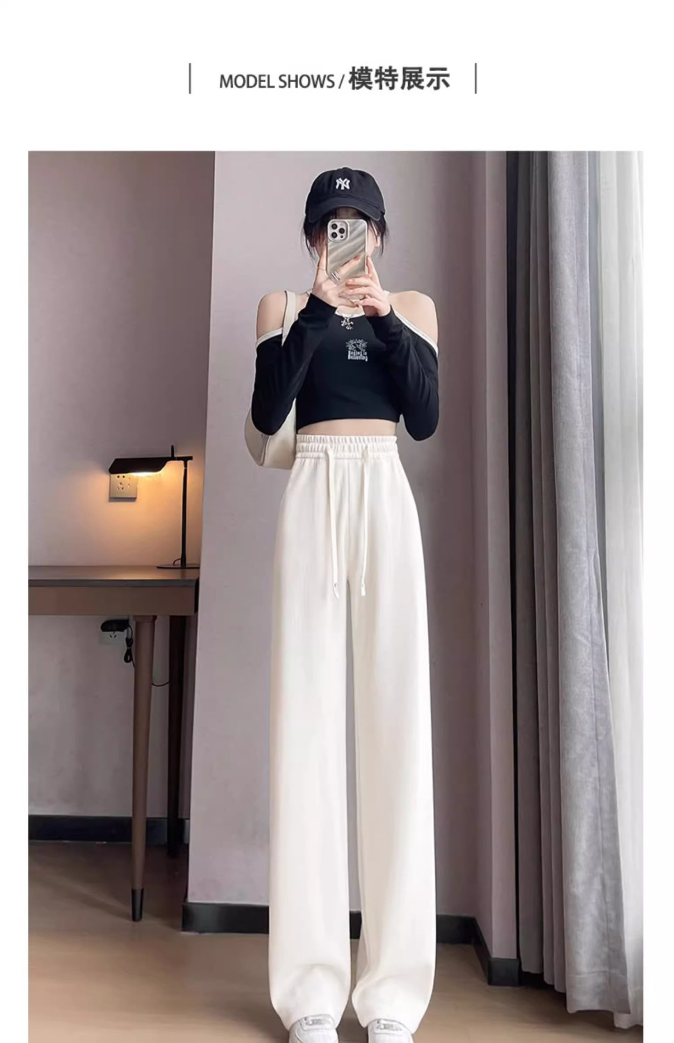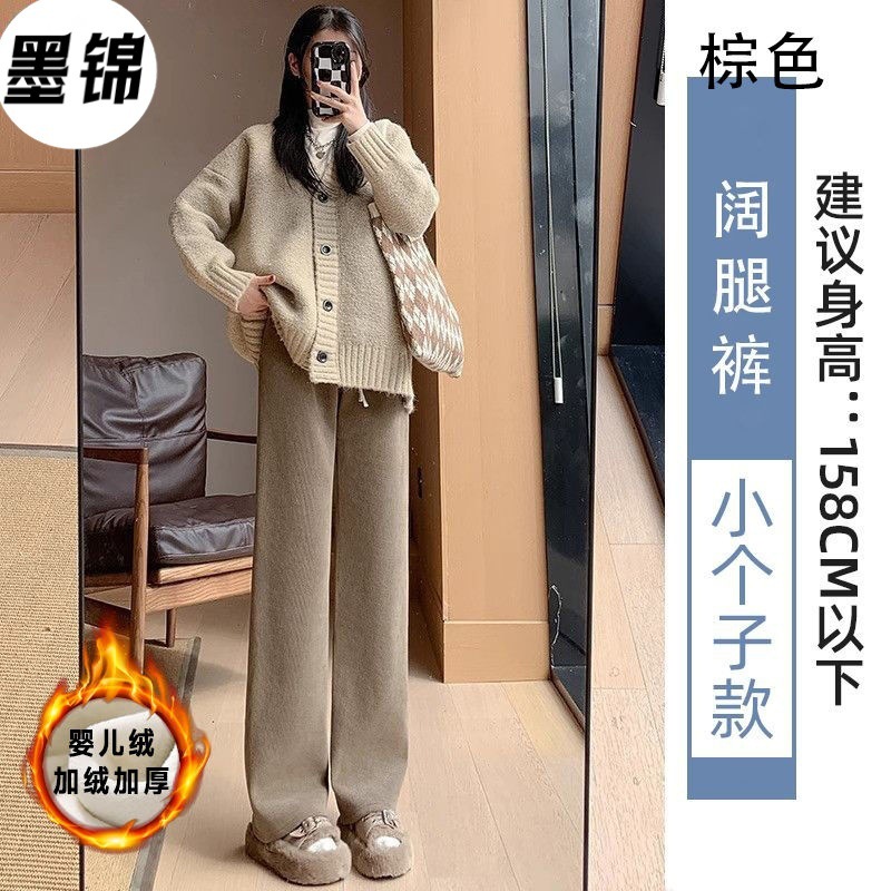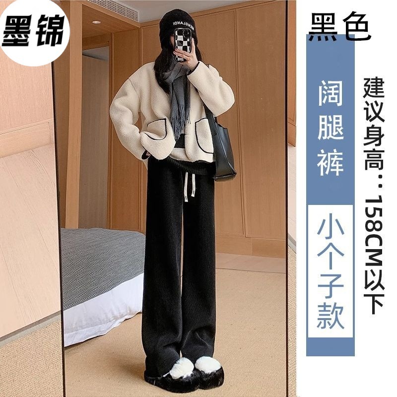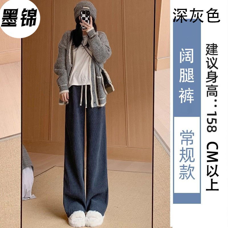 기모 넓은 다리 바지 여자 가을과 겨울 2025 새로운 스타일 작은 좁은 직선 바지 캐주얼 화이트 바지 올매치스토어 가기