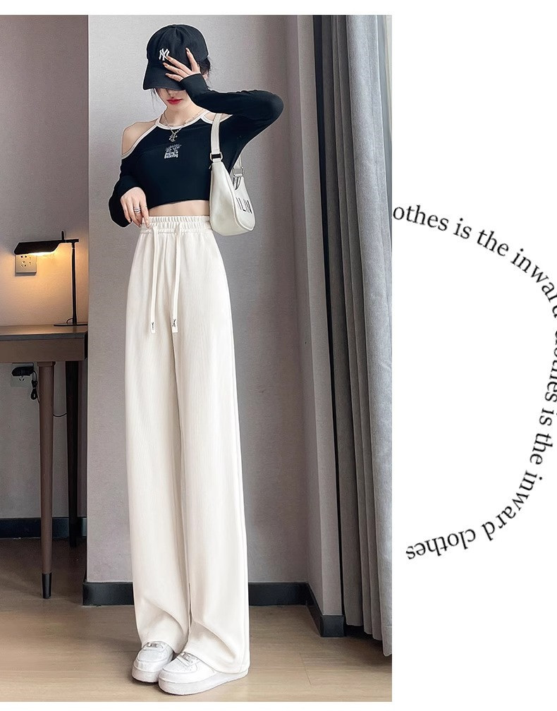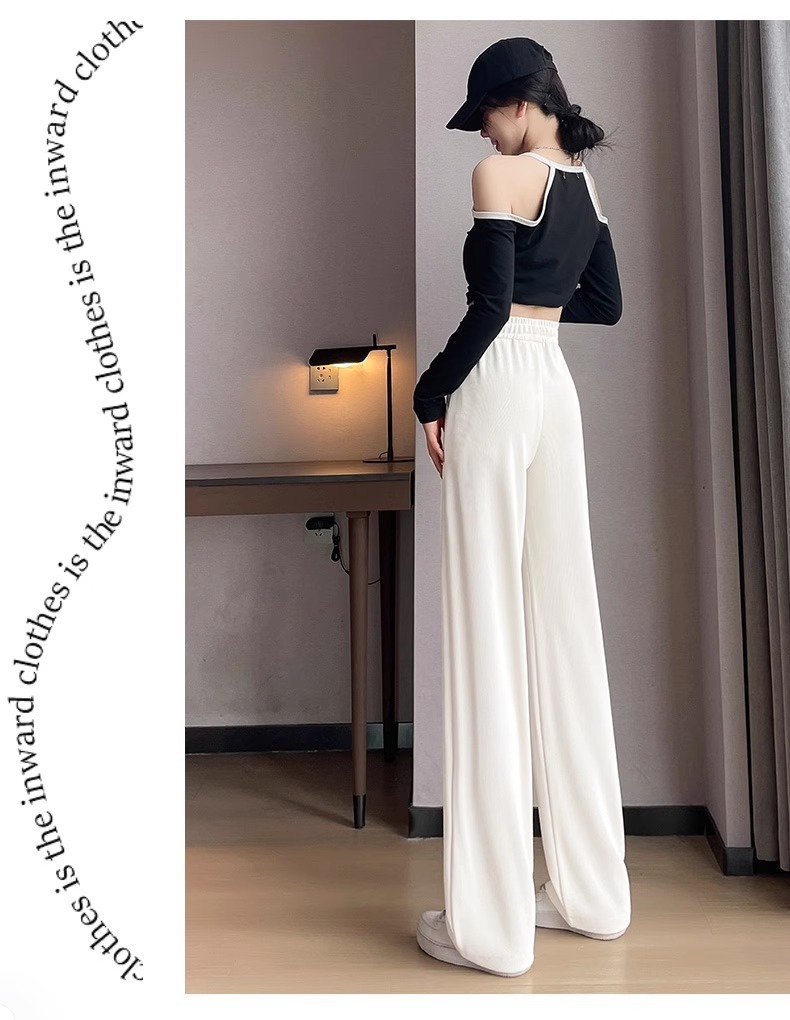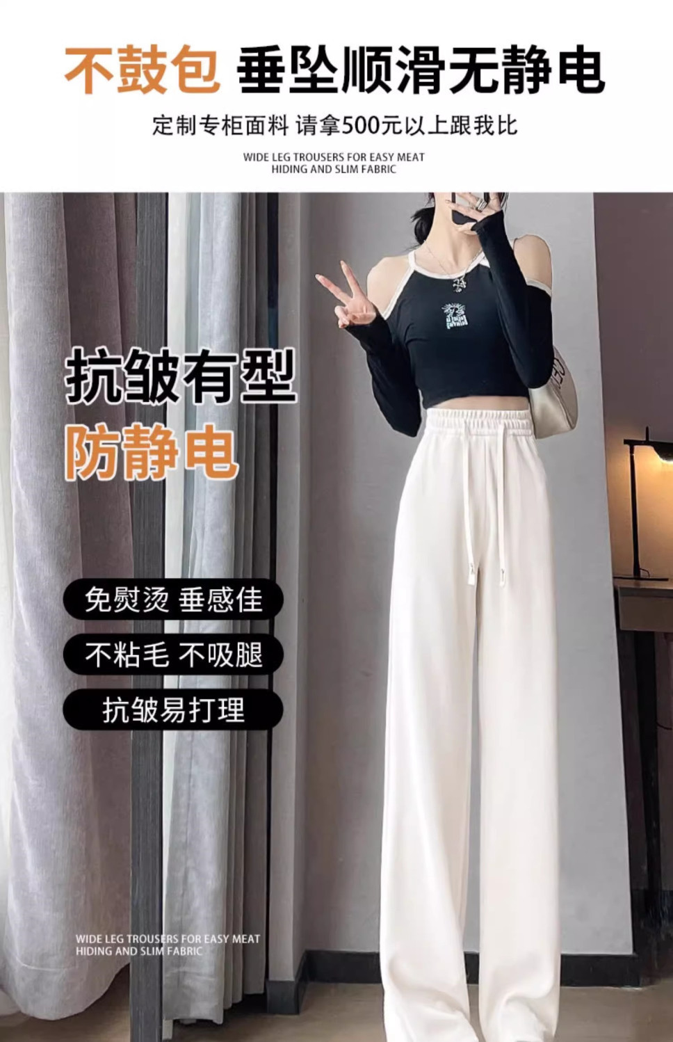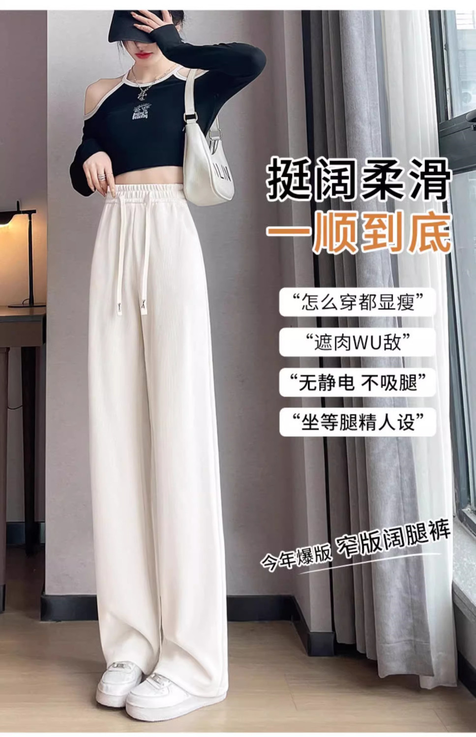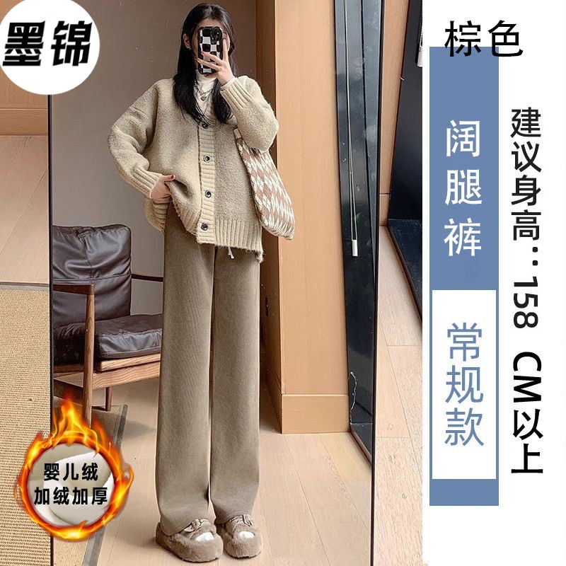 기모 넓은 다리 바지 여자 가을과 겨울 2025 새로운 스타일 작은 좁은 직선 바지 캐주얼 화이트 바지 올매치스토어 가기
