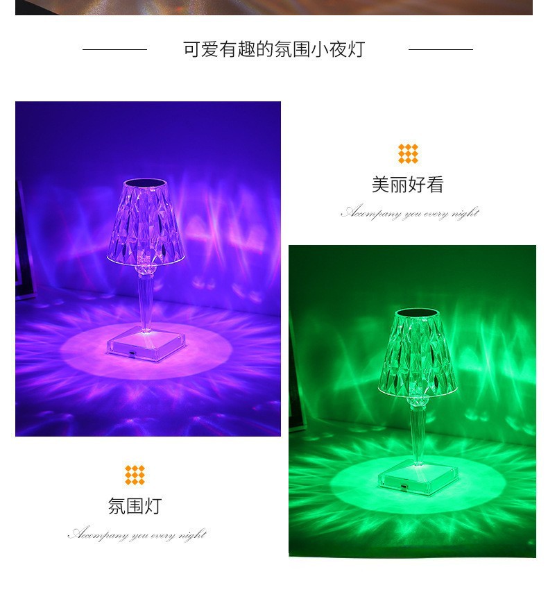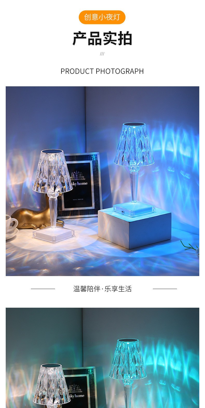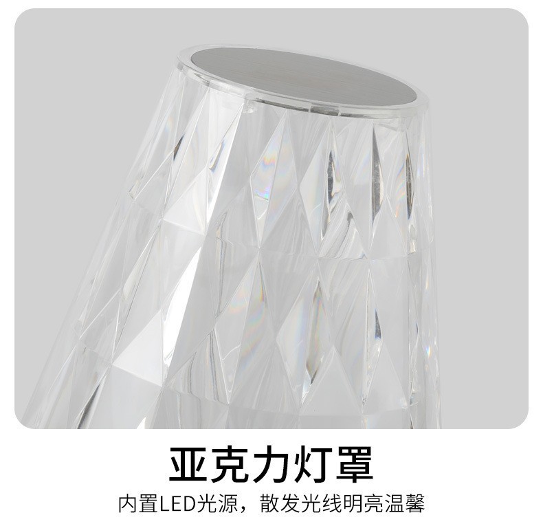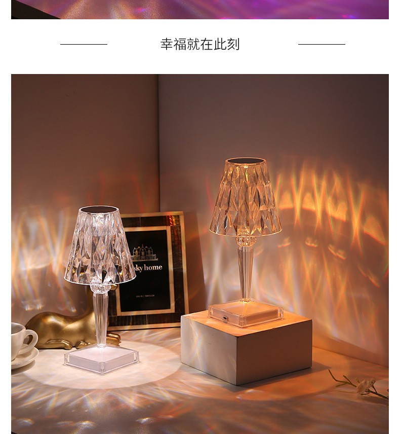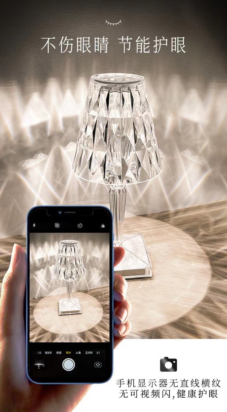 현대적이고 심플한 다이아몬드 크리스탈 로즈 분위기 테이블 램프 선물 가정용 터치 야간등 삼색 변광