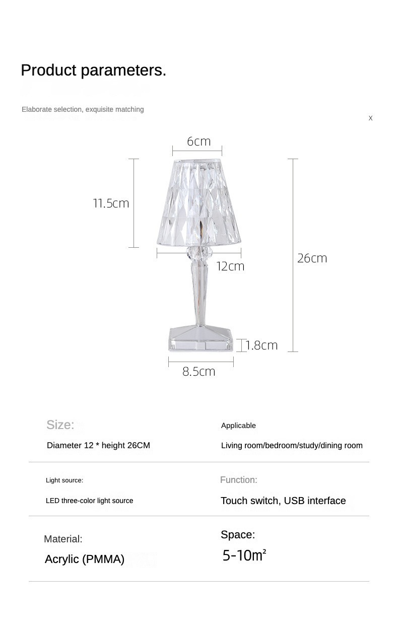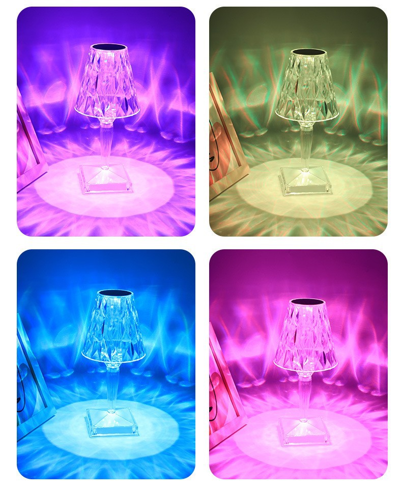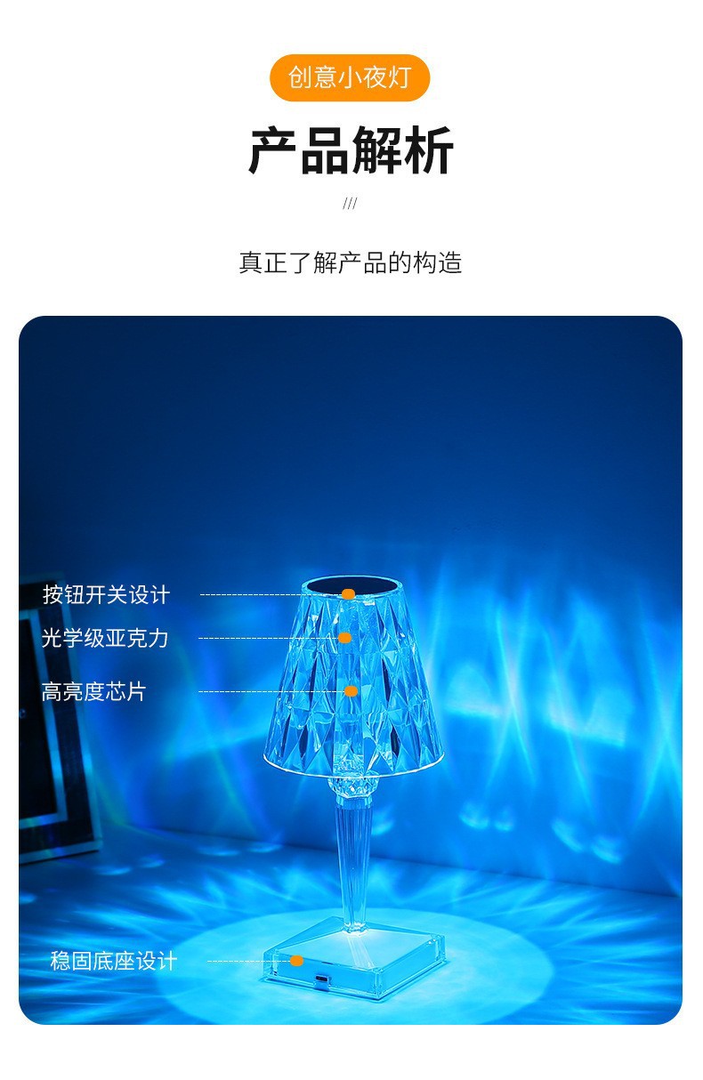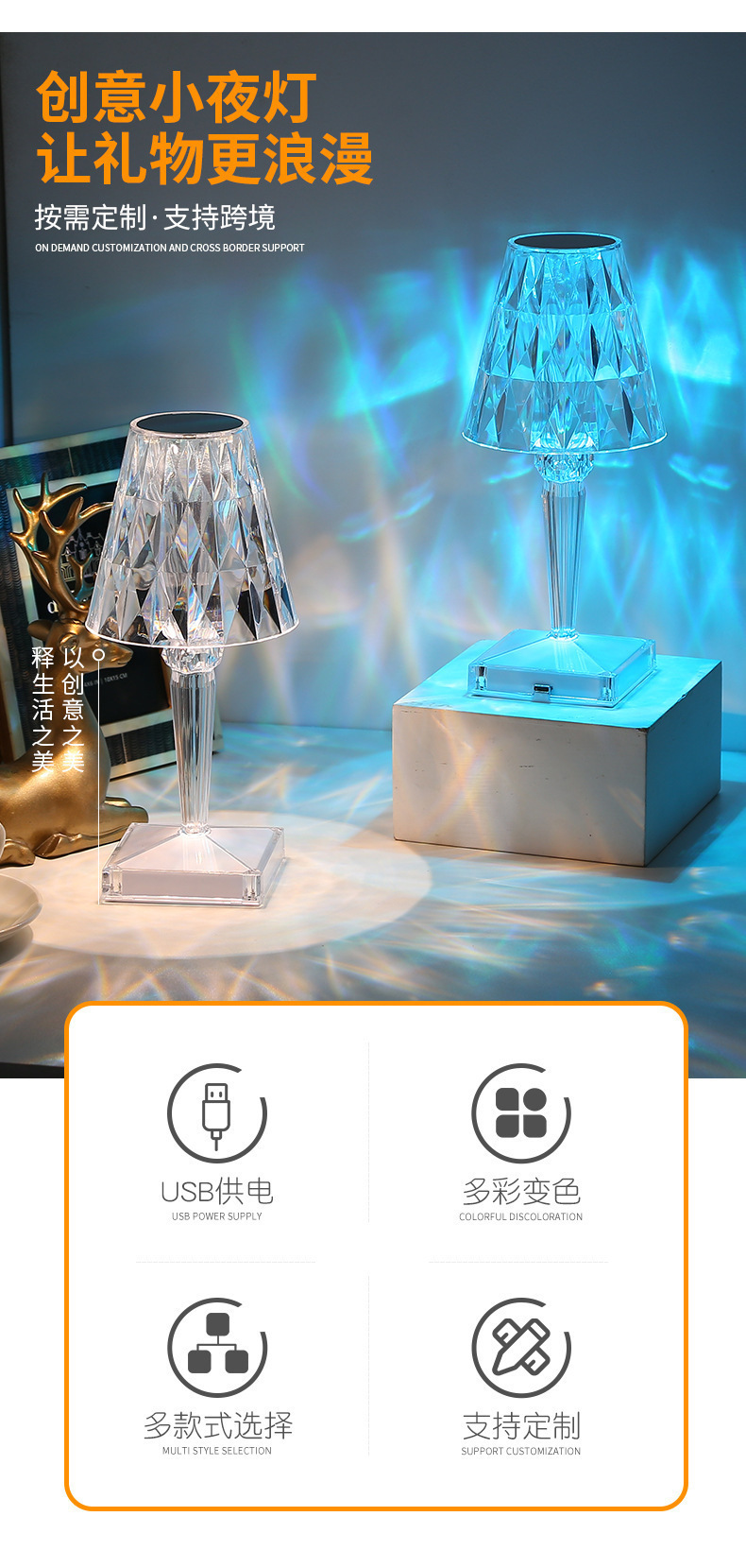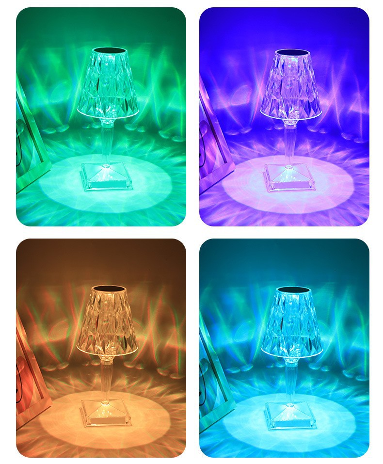 현대적이고 심플한 다이아몬드 크리스탈 로즈 분위기 테이블 램프 선물 가정용 터치 야간등 삼색 변광