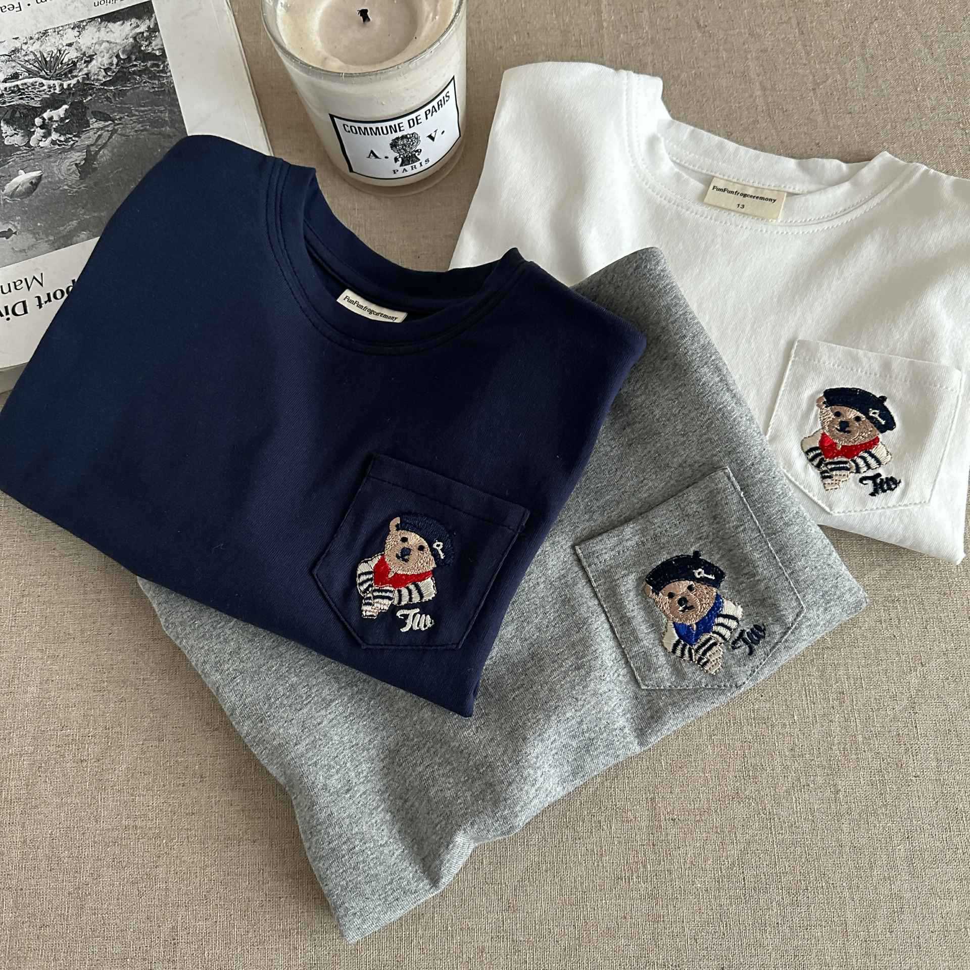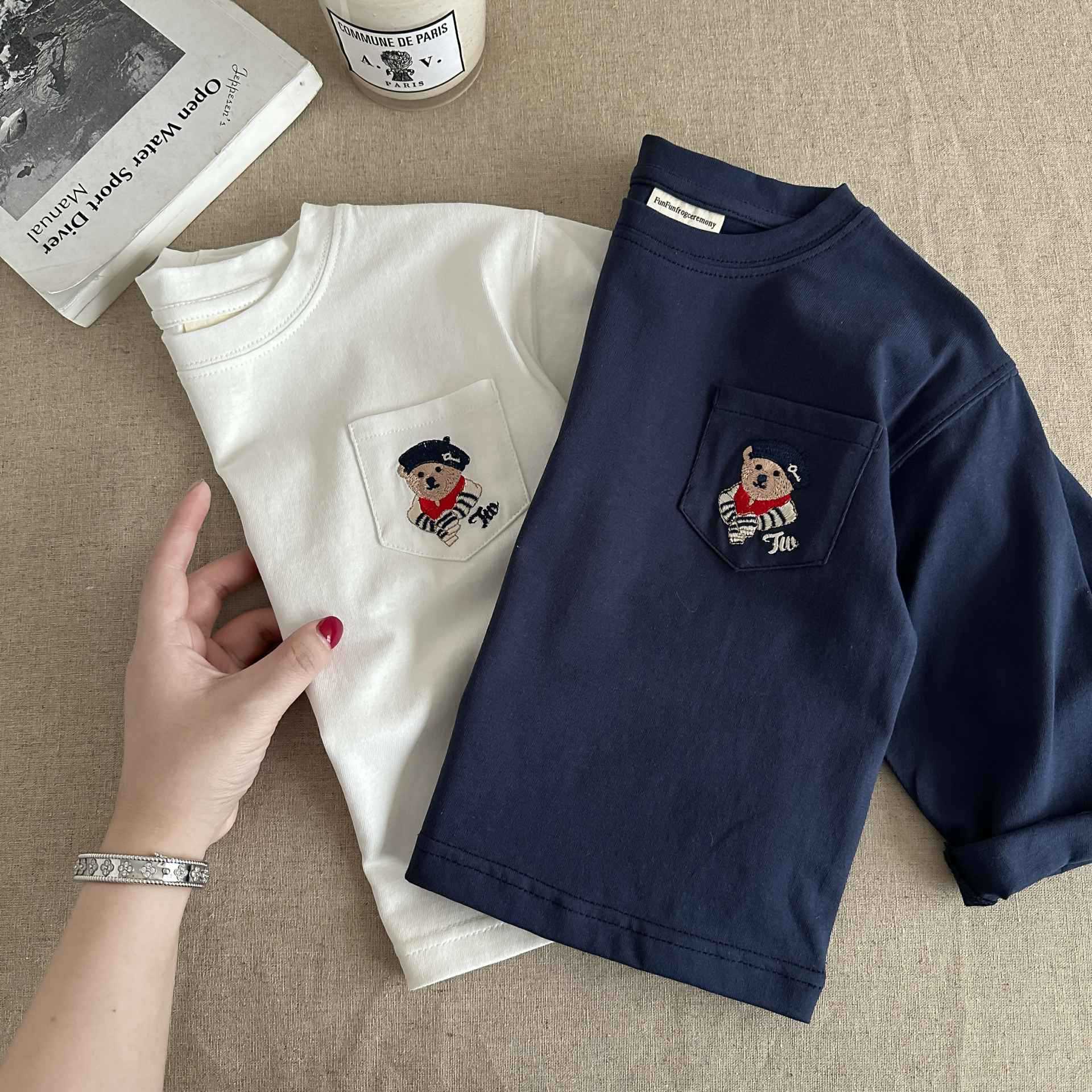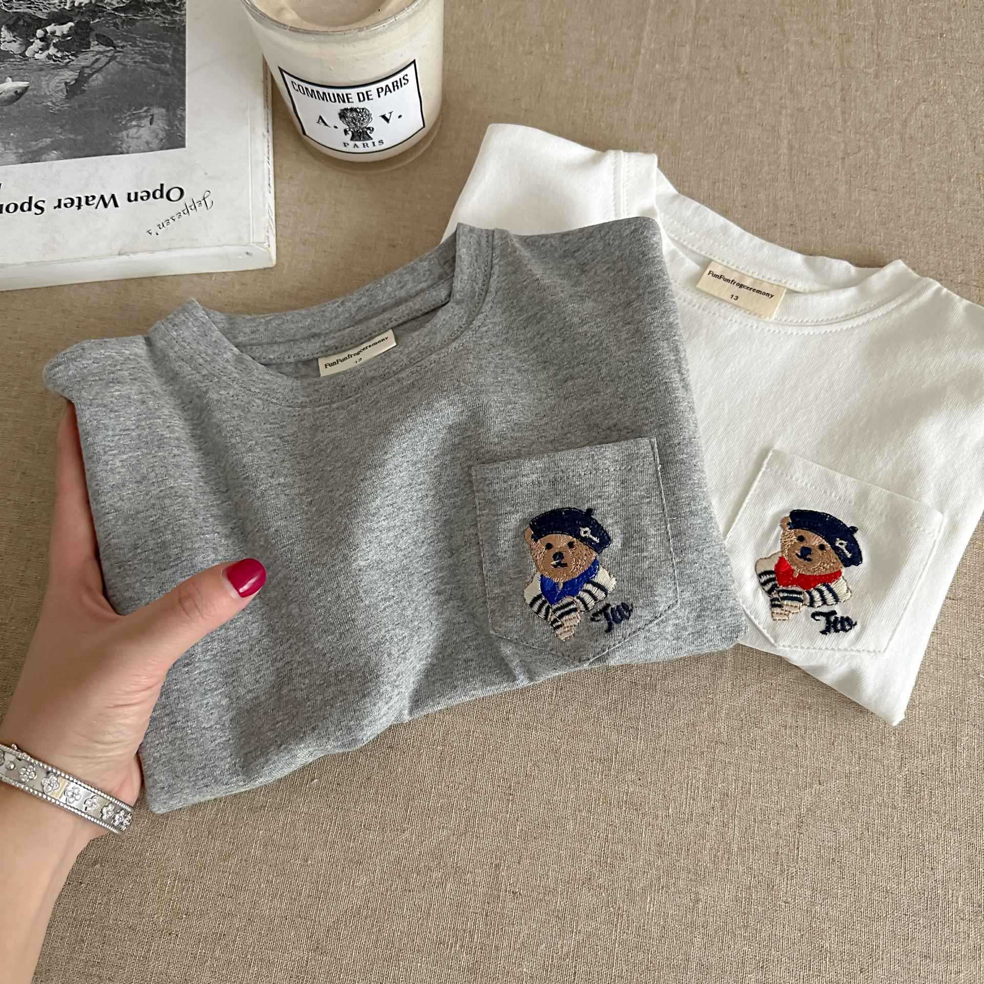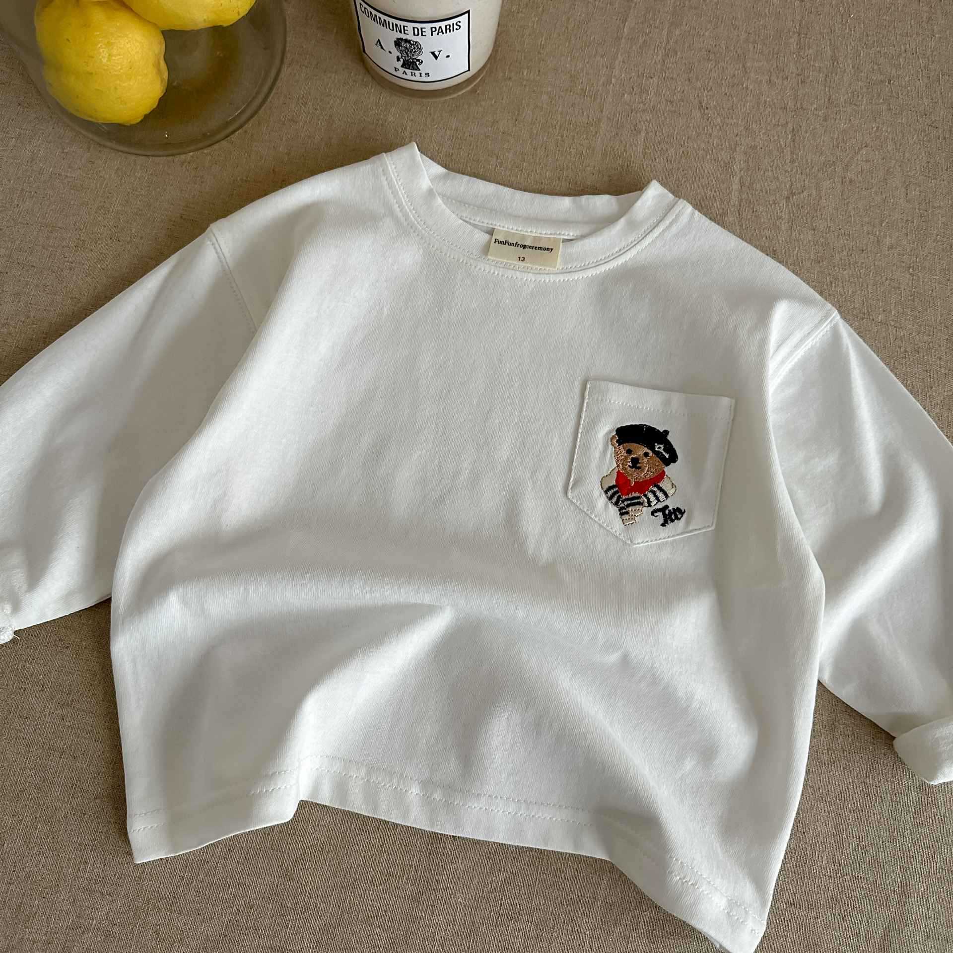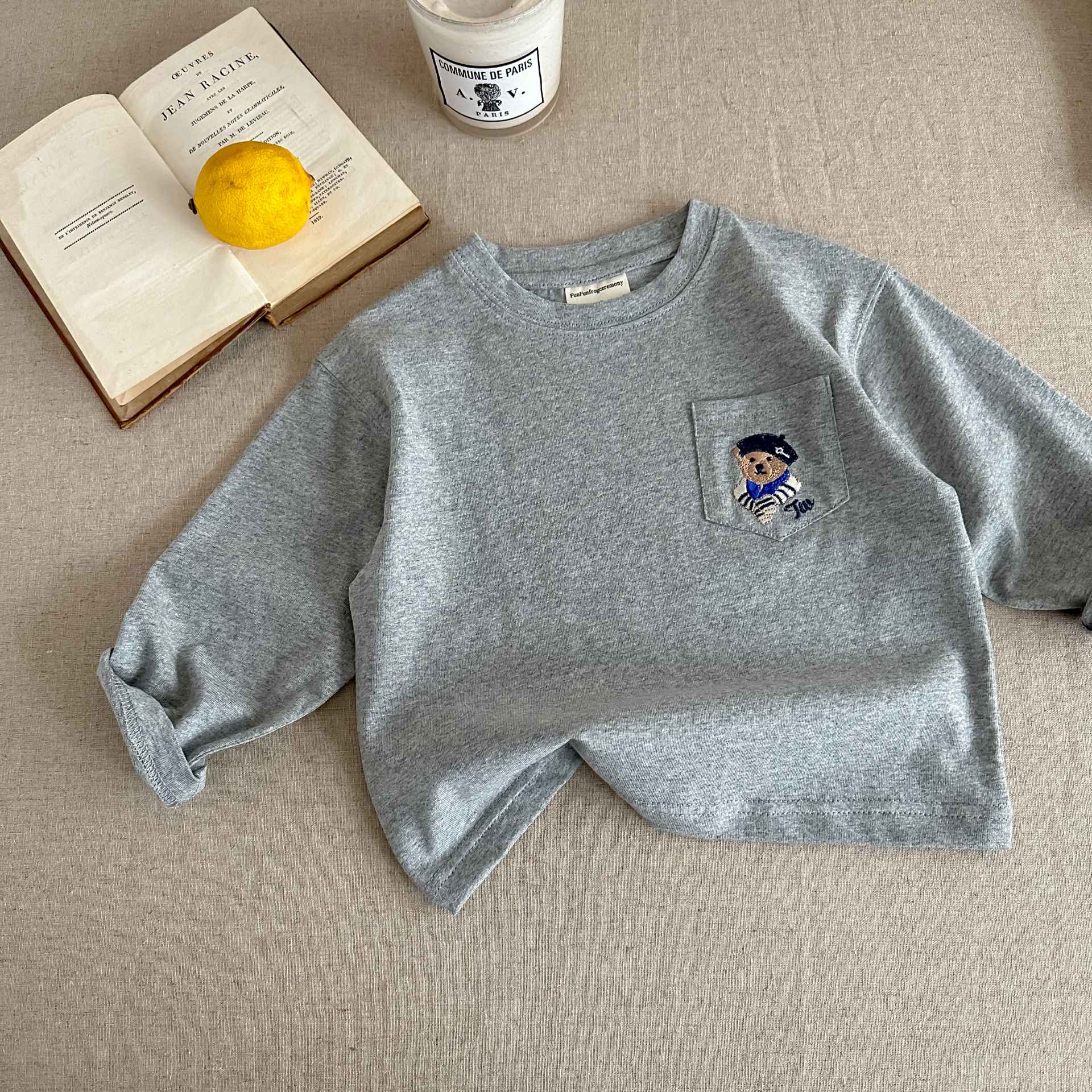 아동베이스 셔츠 2025 봄과 가을 소년과 소녀 티셔츠 어린이 포켓 탑 유행 아기 곰 티셔츠 여성용 긴 소매스토어 가기