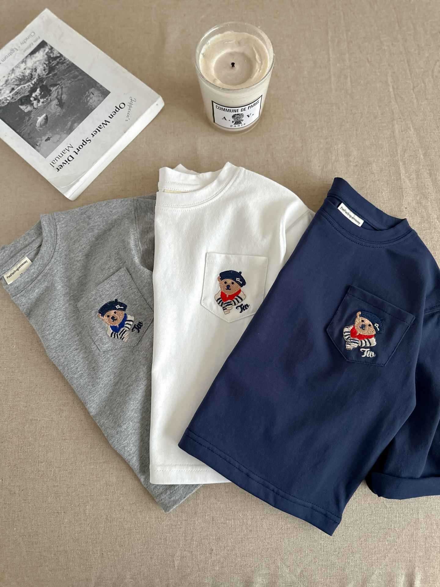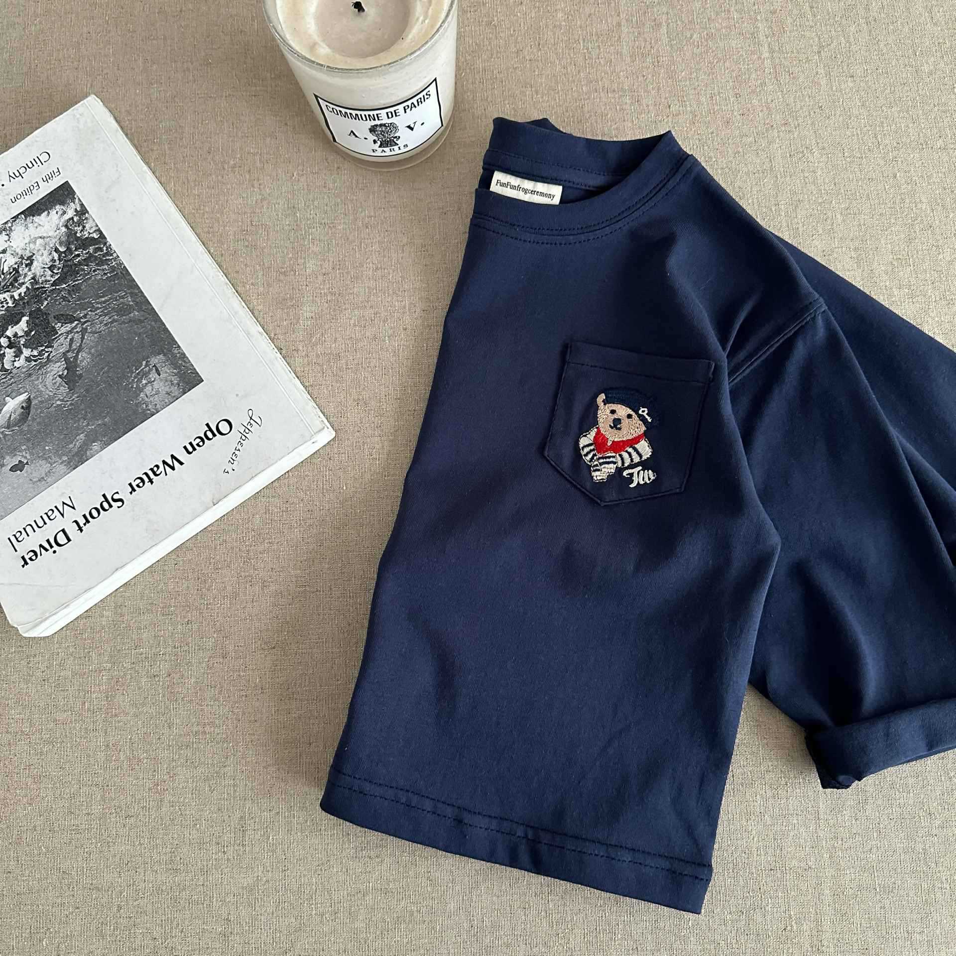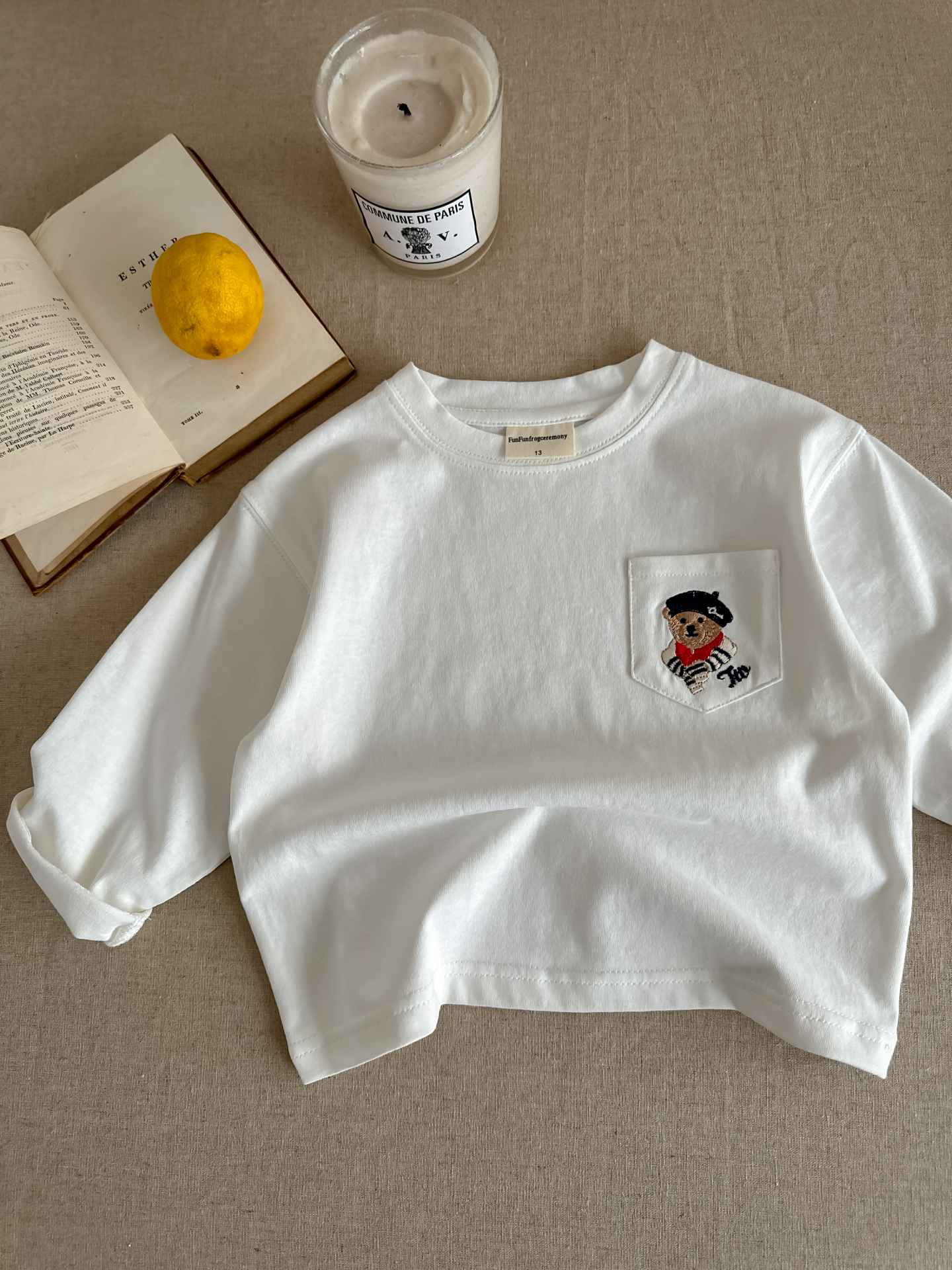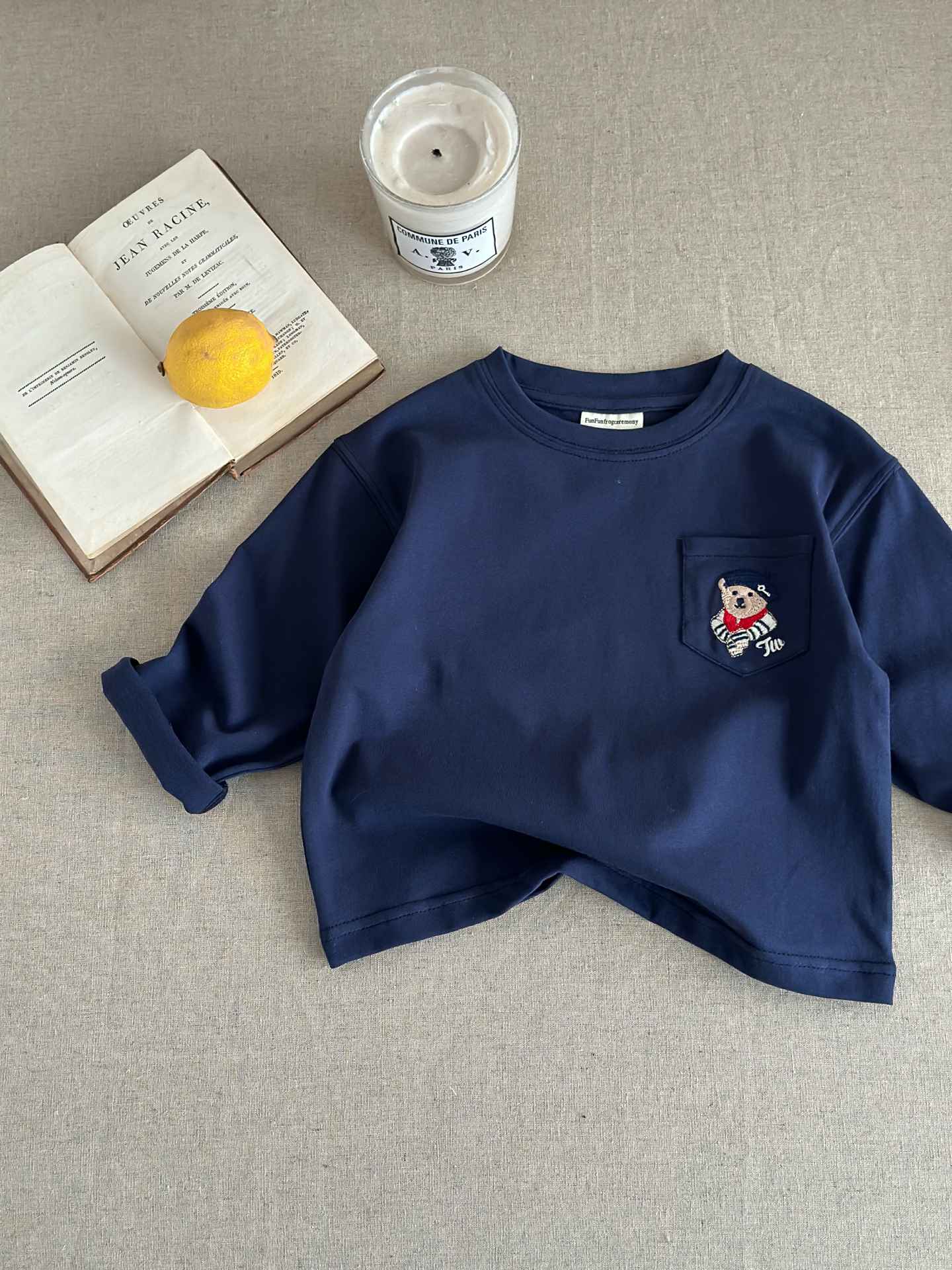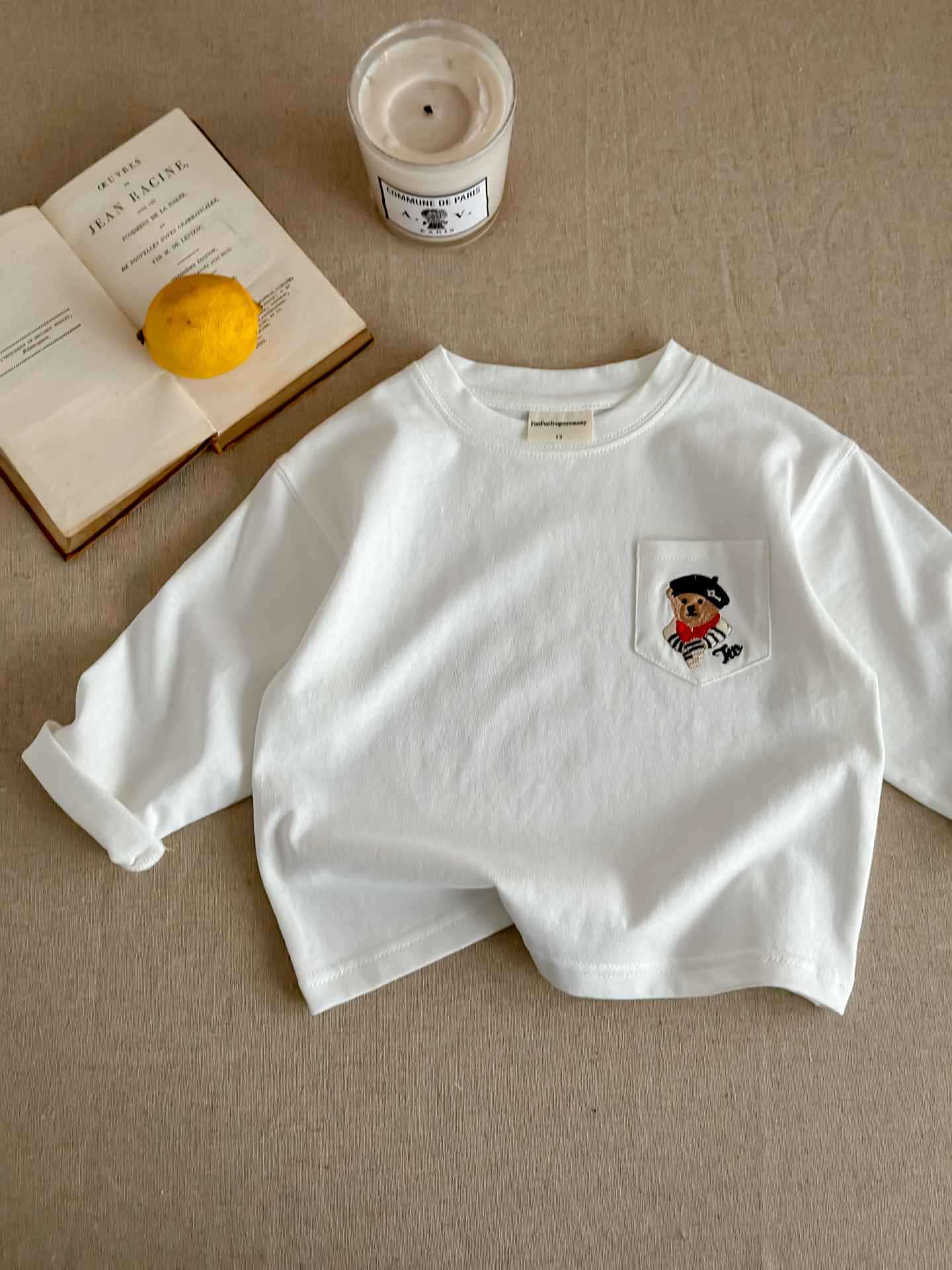 아동베이스 셔츠 2025 봄과 가을 소년과 소녀 티셔츠 어린이 포켓 탑 유행 아기 곰 티셔츠 여성용 긴 소매스토어 가기