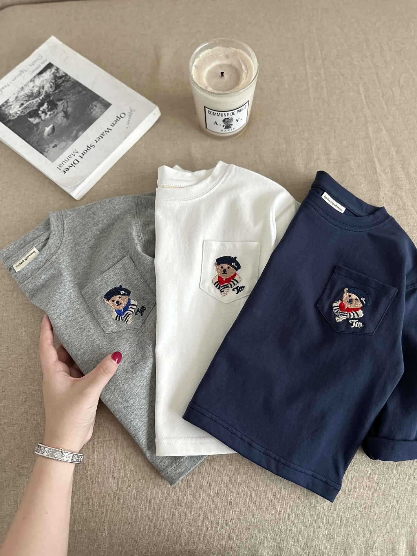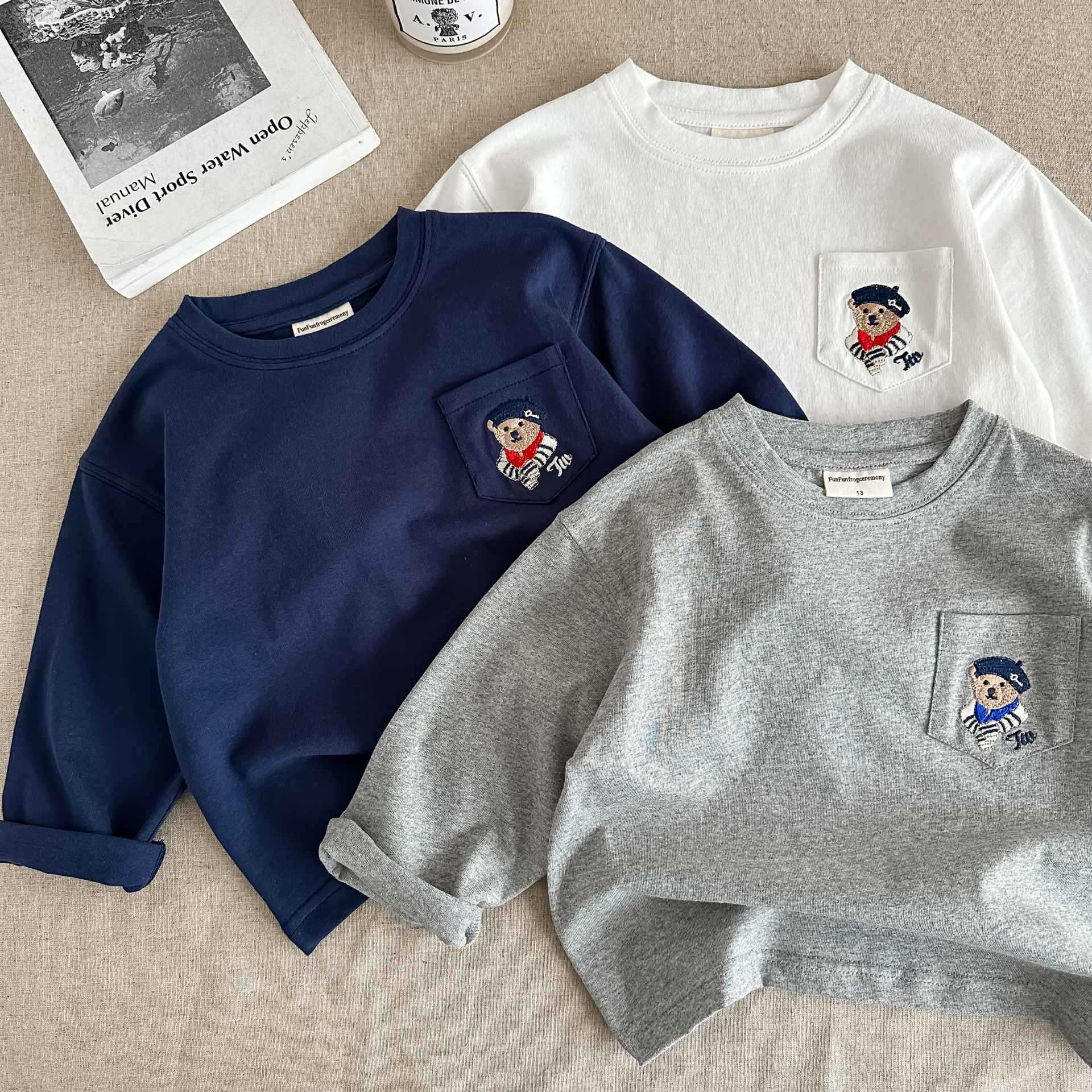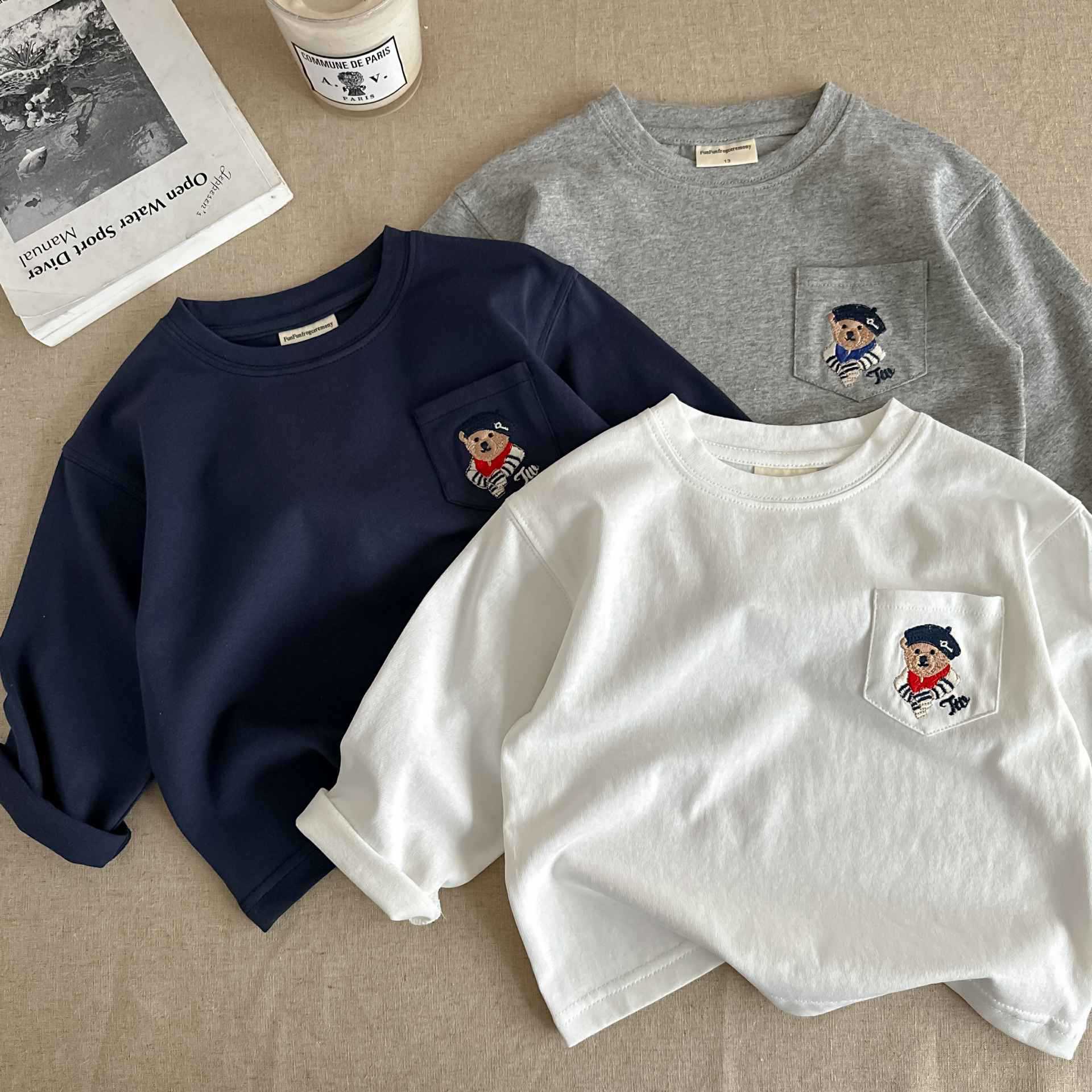 아동베이스 셔츠 2025 봄과 가을 소년과 소녀 티셔츠 어린이 포켓 탑 유행 아기 곰 티셔츠 여성용 긴 소매