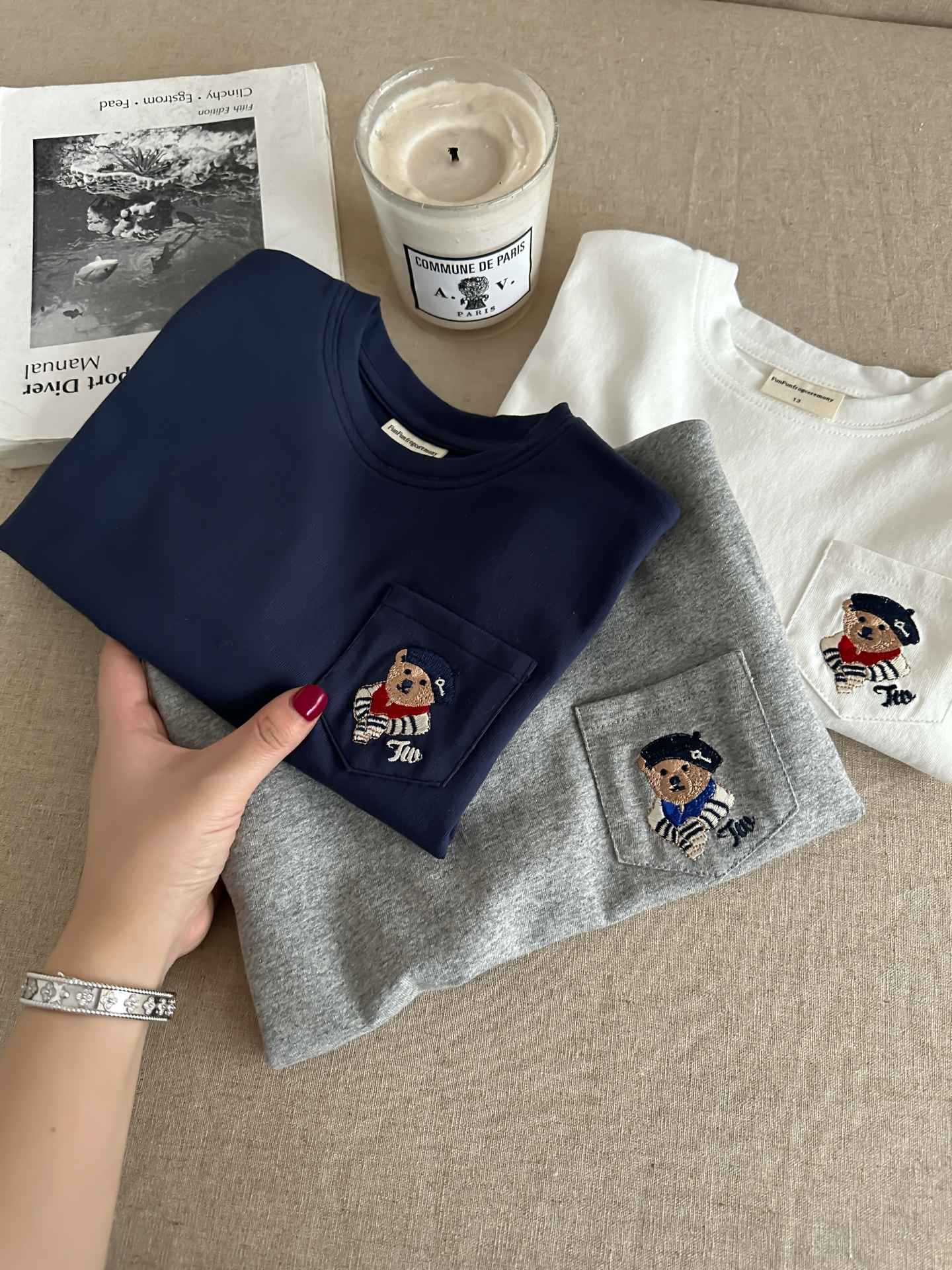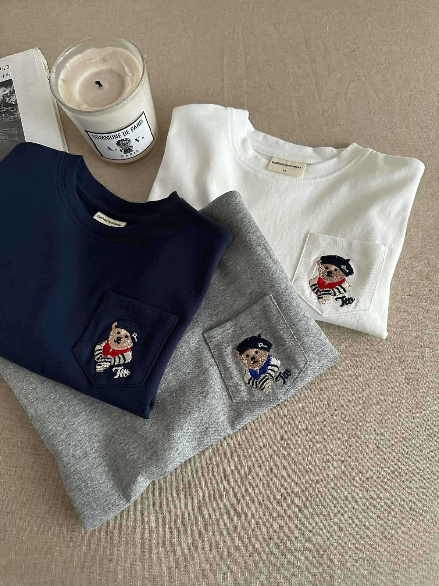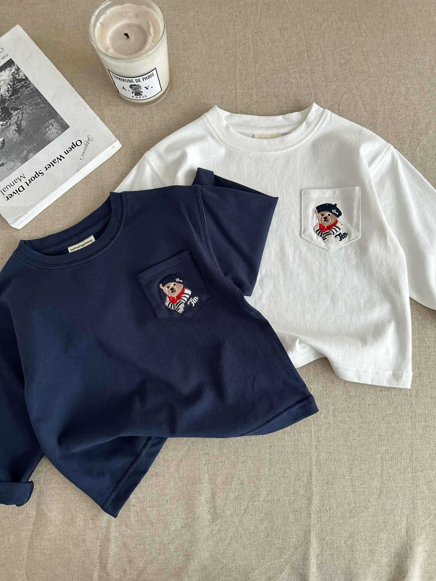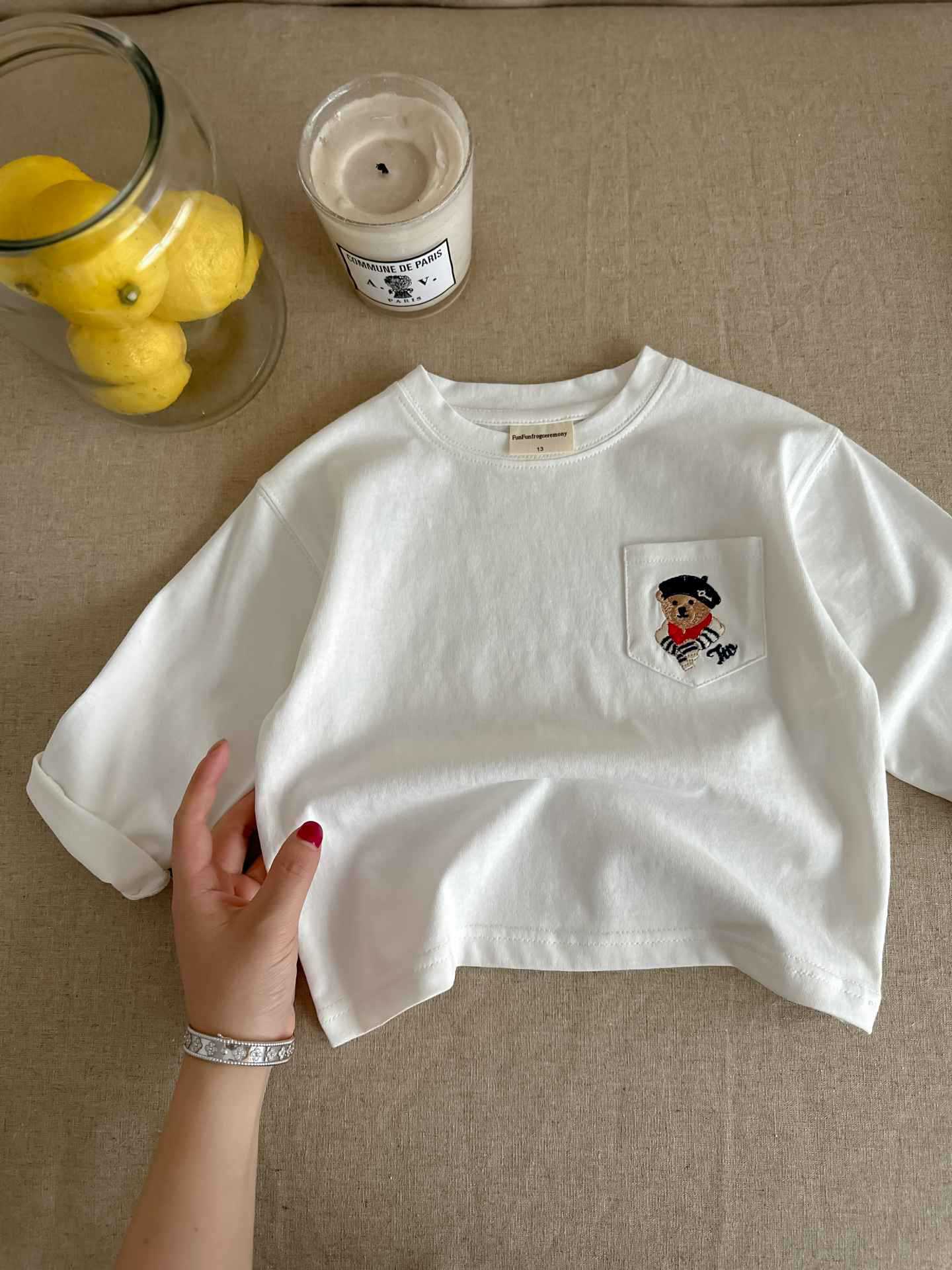 아동베이스 셔츠 2025 봄과 가을 소년과 소녀 티셔츠 어린이 포켓 탑 유행 아기 곰 티셔츠 여성용 긴 소매