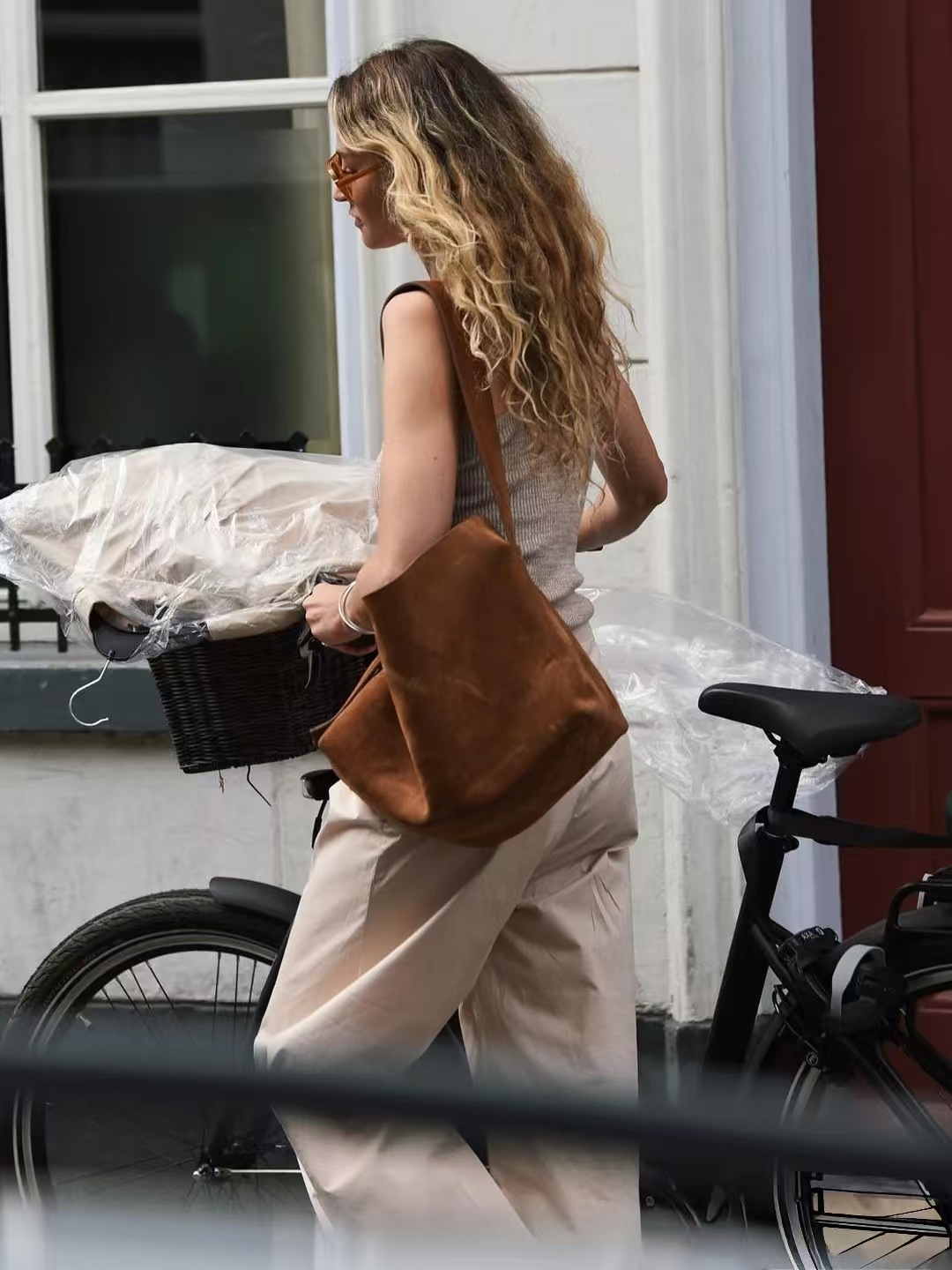 틈새 빈티지 2024 가을과 겨울 새로운 대용량 단일 어깨 통근 모든 매치 다크 브라운 우아한 캐주얼 프로스트 버킷 백
