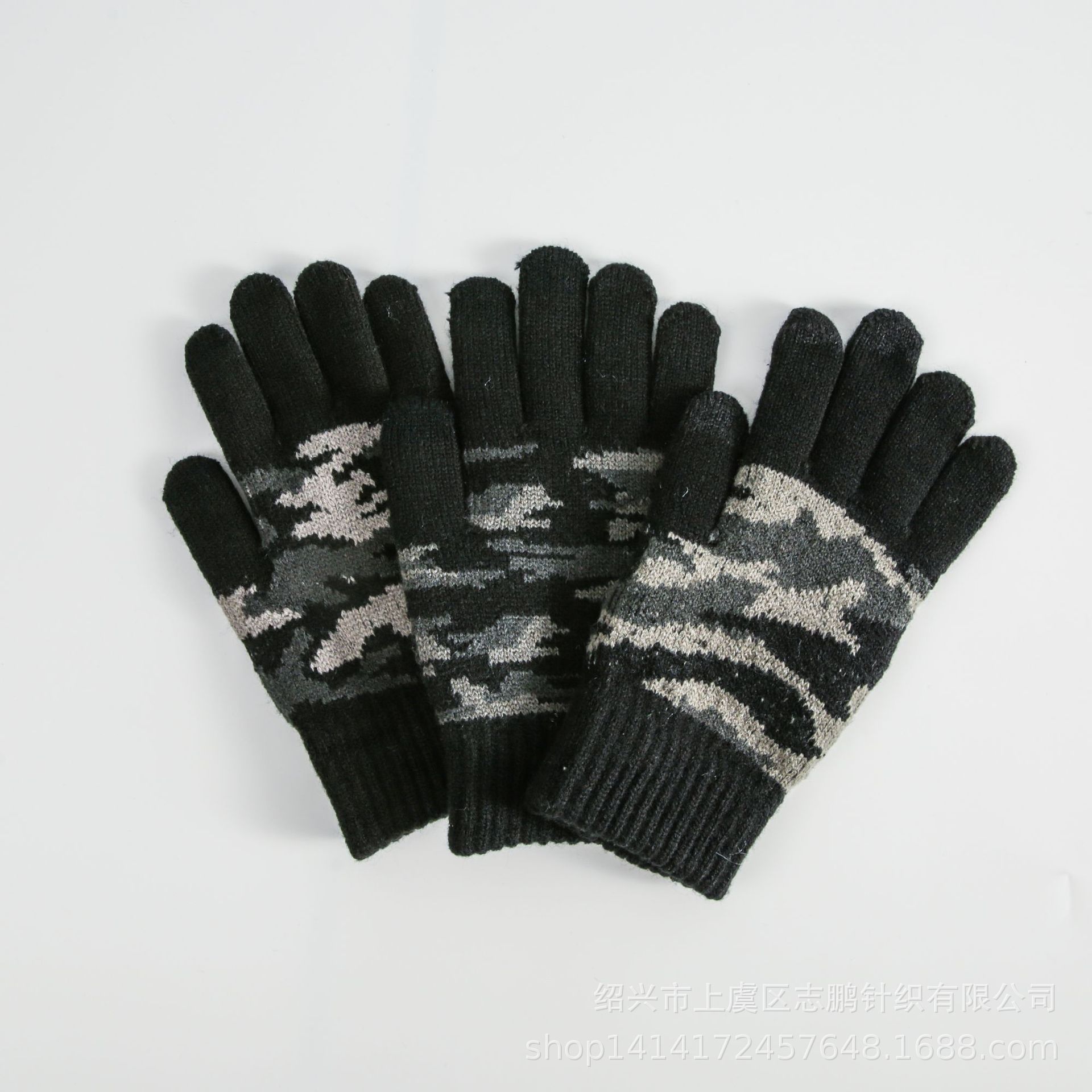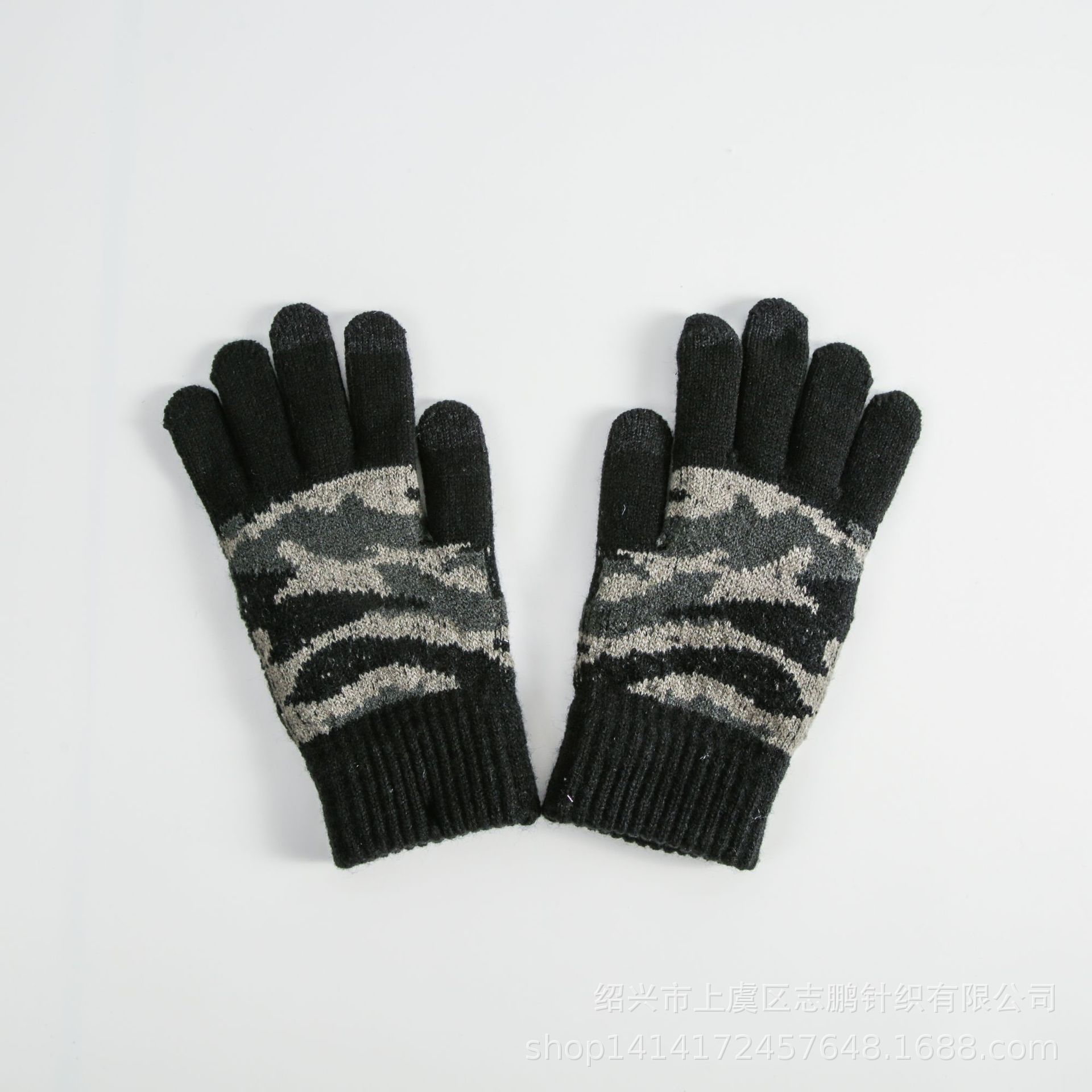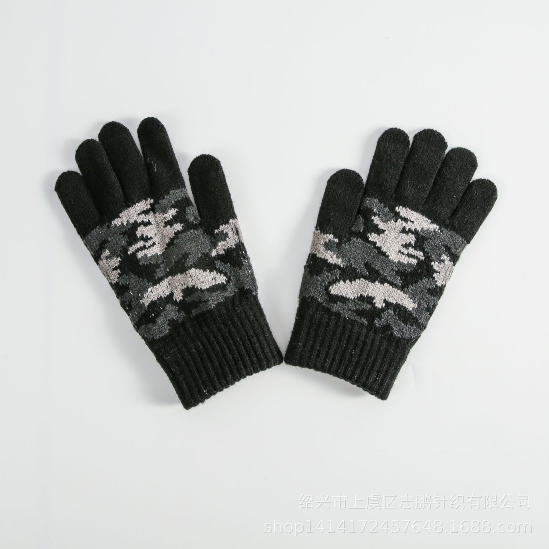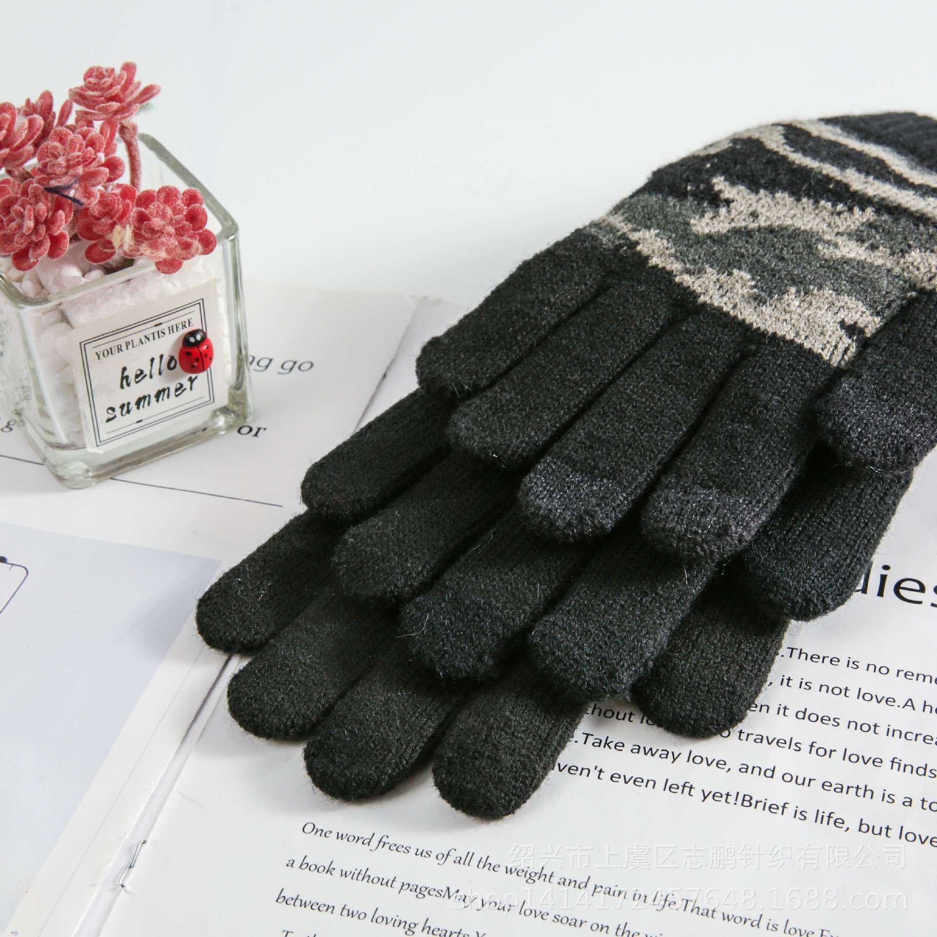 겨울철 남녀공용 롱 다섯손가락 배색 니트 울 장갑, 한국형 다용도 사이클링, 보온 및 방한, 터치스크린스토어 가기