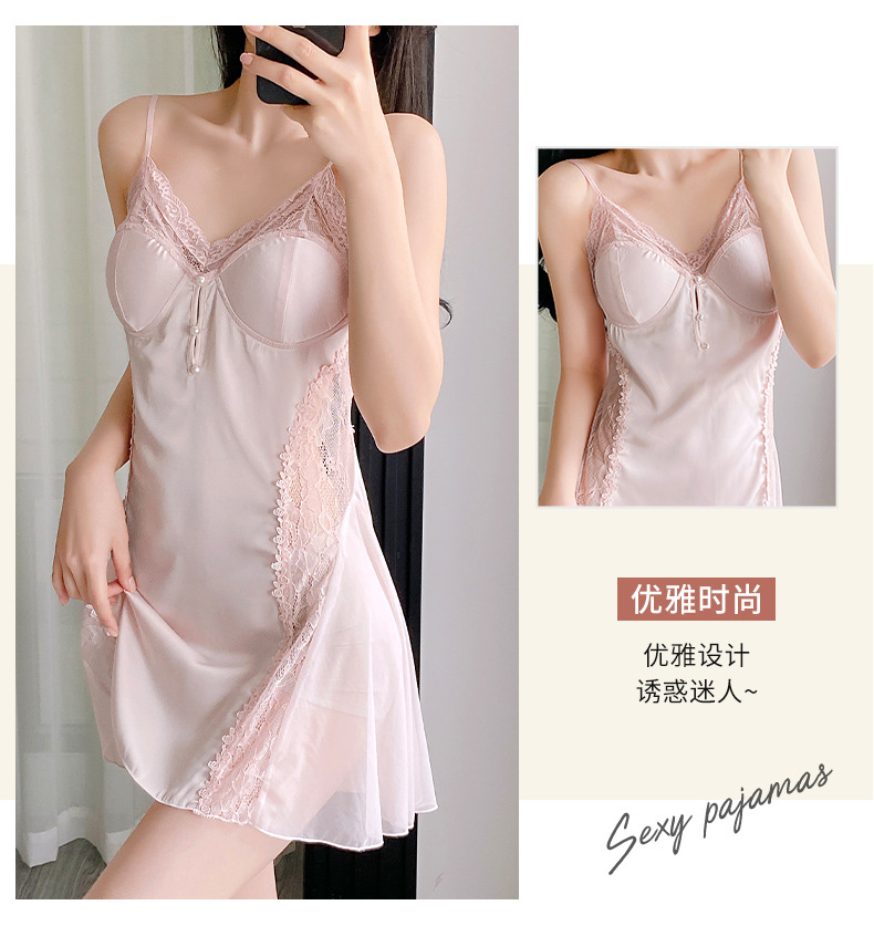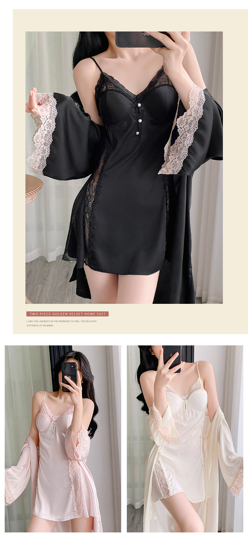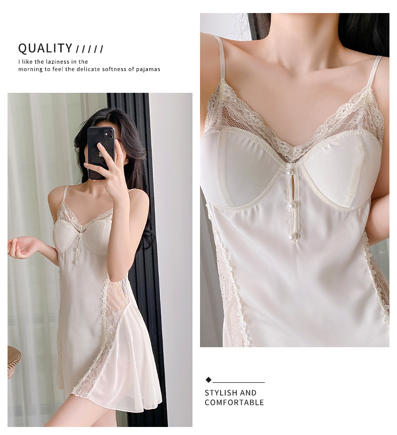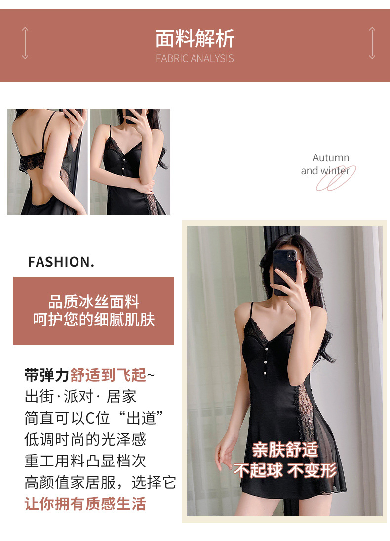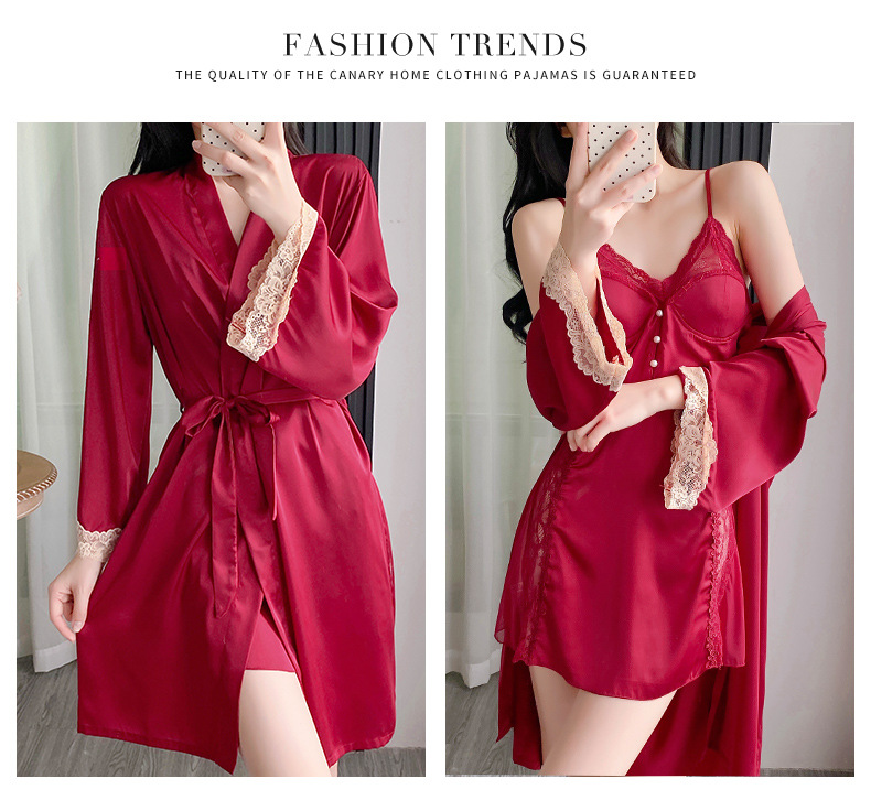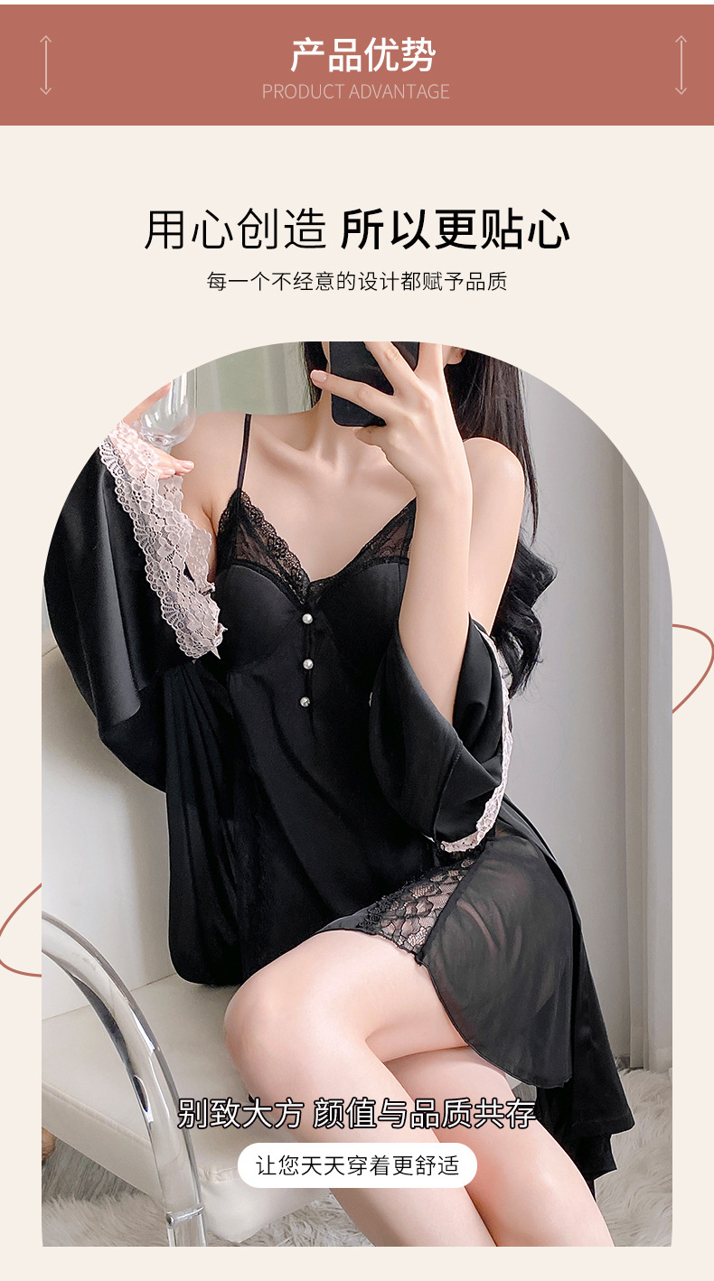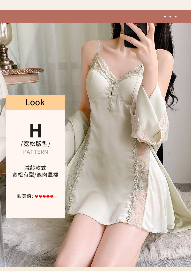 순수하고 섹시하며 귀여운 잠옷 세트, 아이스 실크 슬립 잠옷과 가운 투피스 세트, 여성용 부드러운 홈웨어스토어 가기