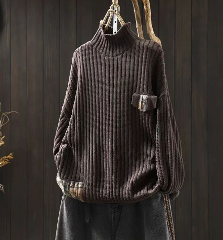 가을과 겨울 새로운 높은 목 면화 스웨터 여성의 플러스 사이즈 복고풍 민족 스타일 느슨한 풀오버 스웨터