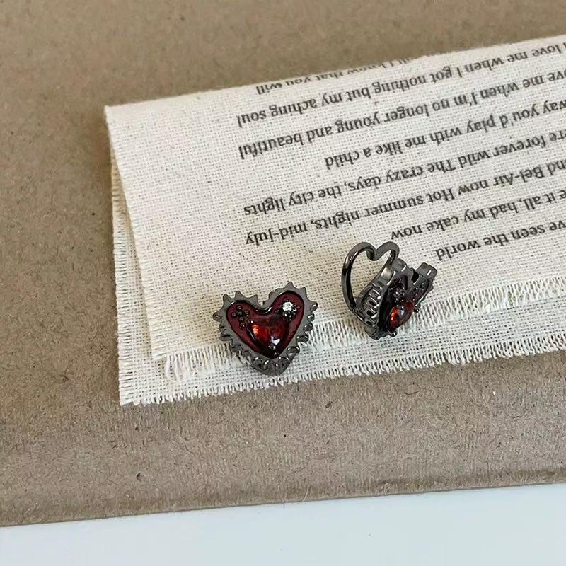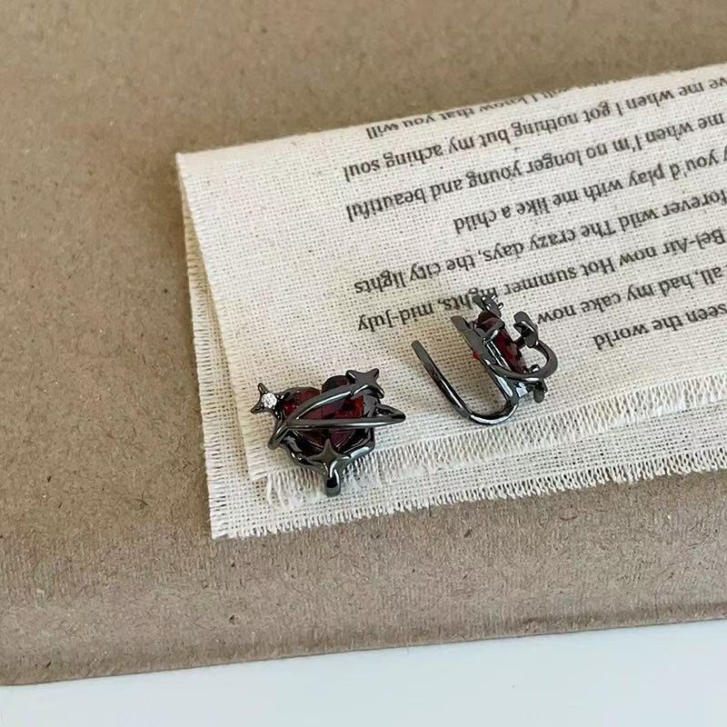고딕 스타일 다크 레드 러브 이어 클립 여성 2025 새로운 입장 빛 럭셔리 하이 엔드 스파이스 걸스 니치 귀걸이