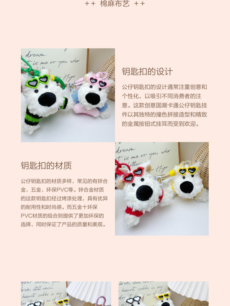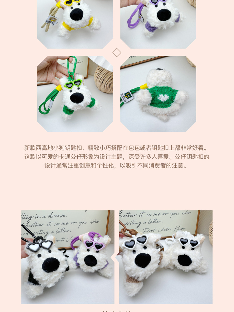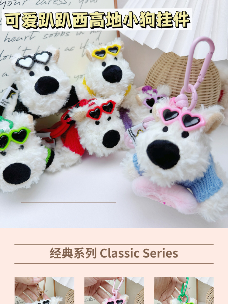 새로운 웨스트 하이랜드 강아지 펜던트 귀여운 만화 봉제 인형 자동차 키 체인 고급 센스 백 펜던트스토어 가기