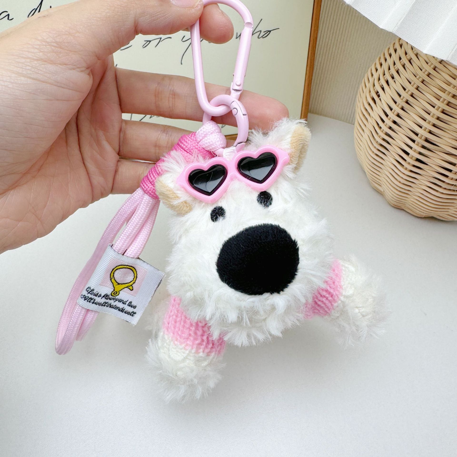 새로운 웨스트 하이랜드 강아지 펜던트 귀여운 만화 봉제 인형 자동차 키 체인 고급 센스 백 펜던트