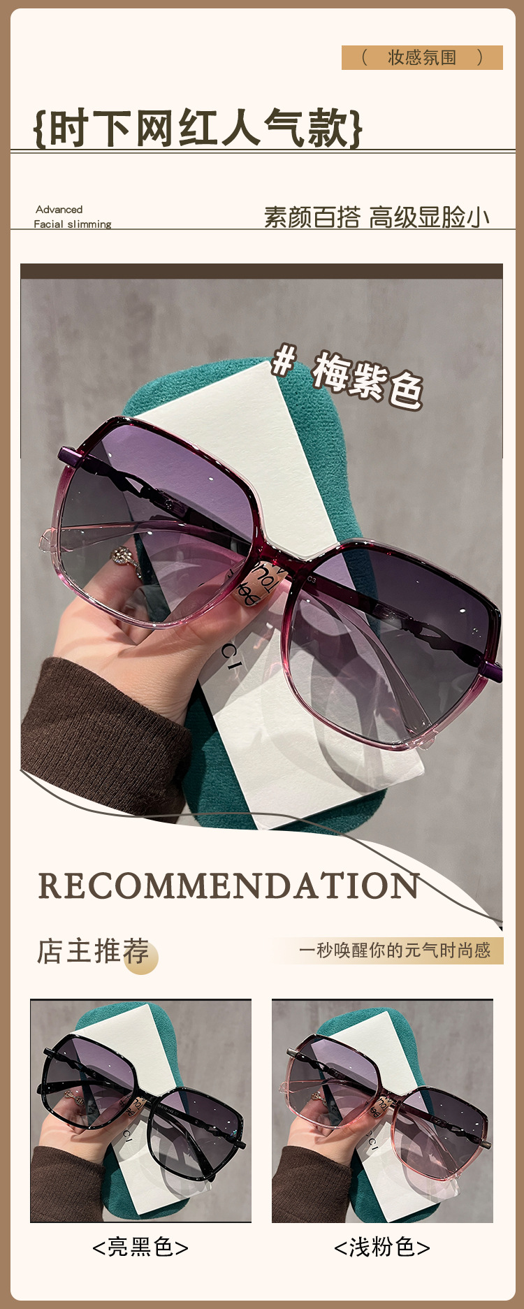 한국식 관대 한 상자 TR90 패션 여성 선글라스 혼합 배치 안티 자외선 도시 하이 센스 매화 퍼플 선글라스