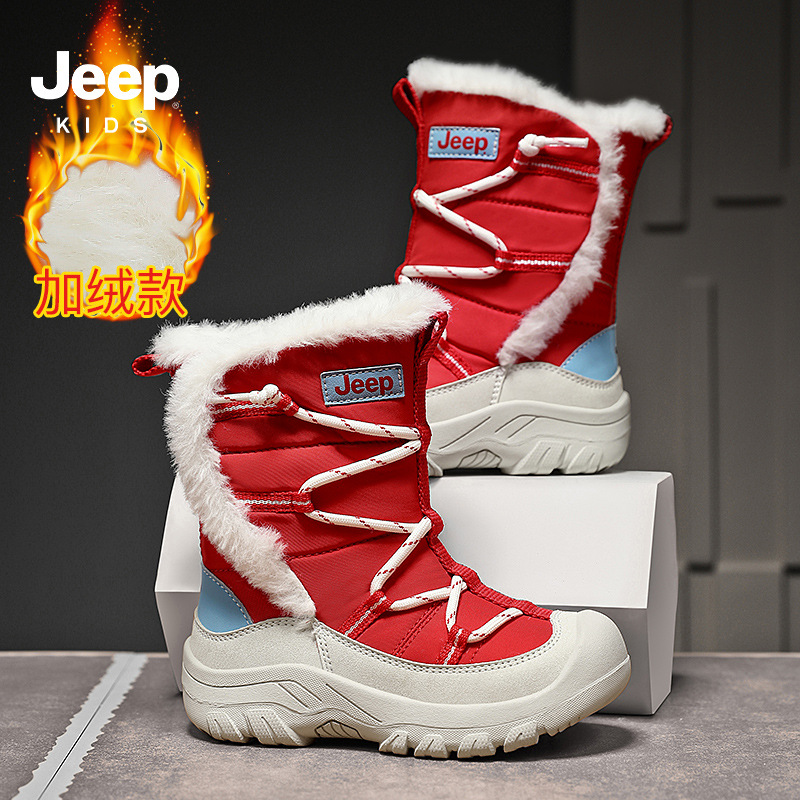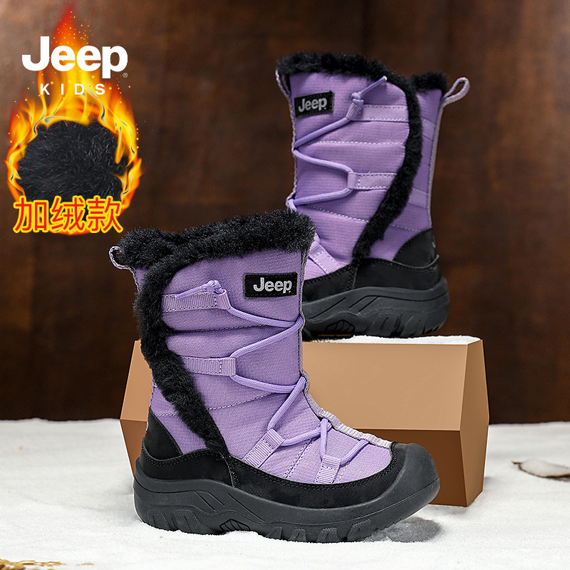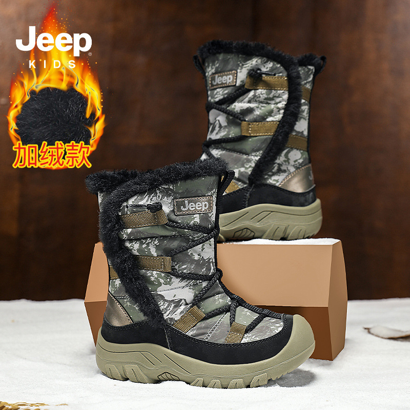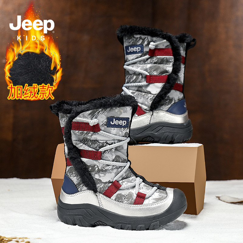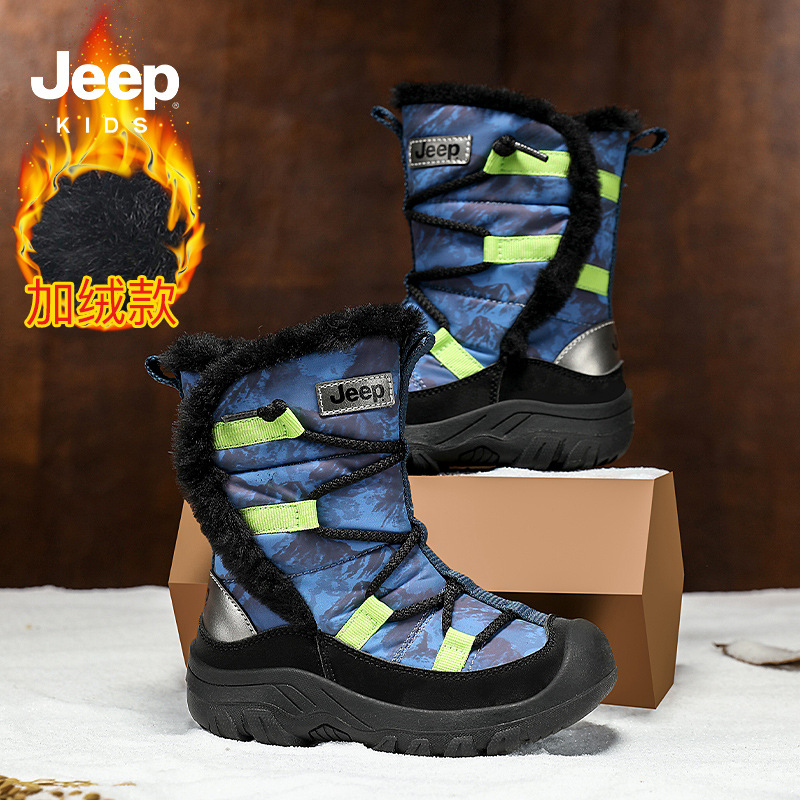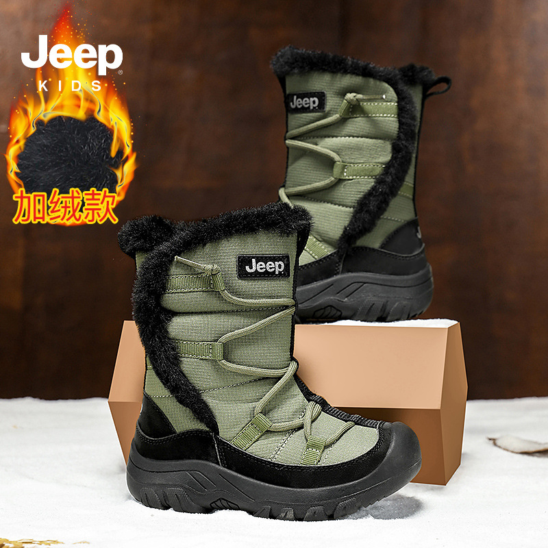 지프 어린이 면화 2024 겨울 새 기모 두꺼운 면화 스노우 부츠 미끄럼 방지 따뜻한 소년 신발 부츠