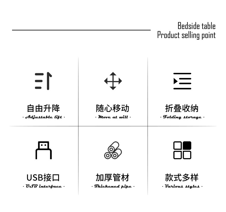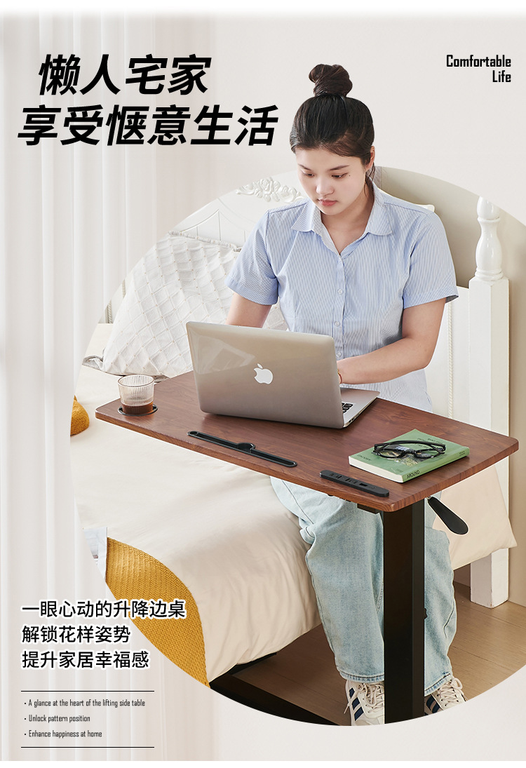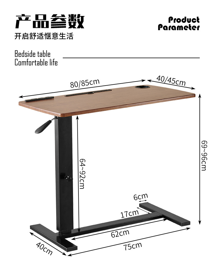 접이식 침대 옆 테이블 이동식 작업 및 학습용 컴퓨터 테이블 병원 간호용 식탁 침실 기숙사 높이 조절 테이블 이동식 테이블