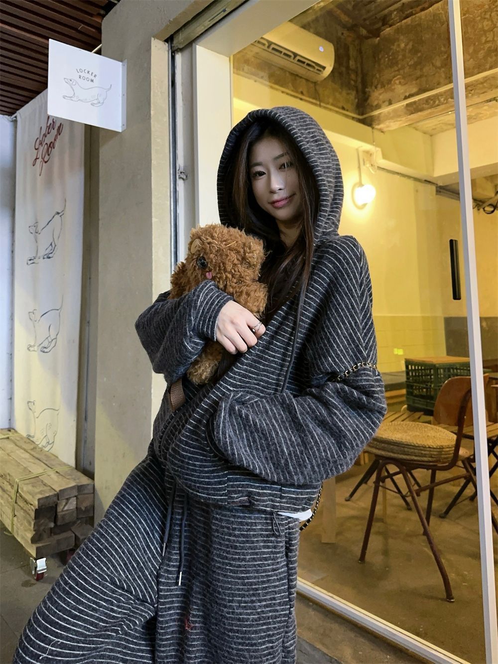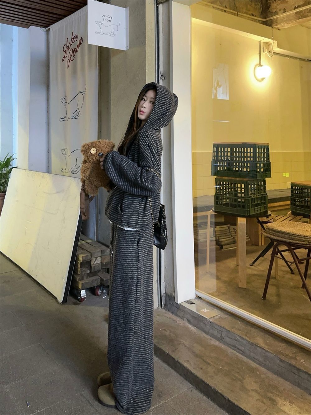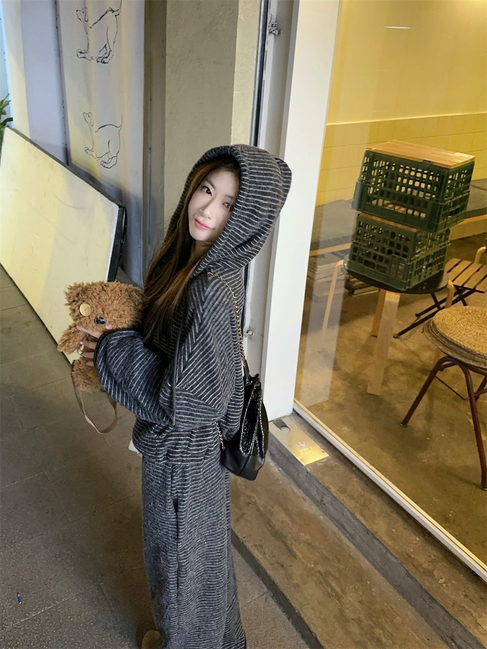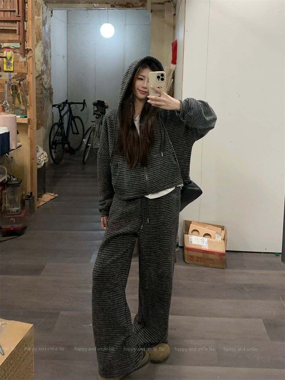 캐주얼 패션 봉제 줄무늬 세트 2024 새로운 여성의 가을 슬림 스포츠 스웨터 와이드 다리 바지 투피스 세트스토어 가기