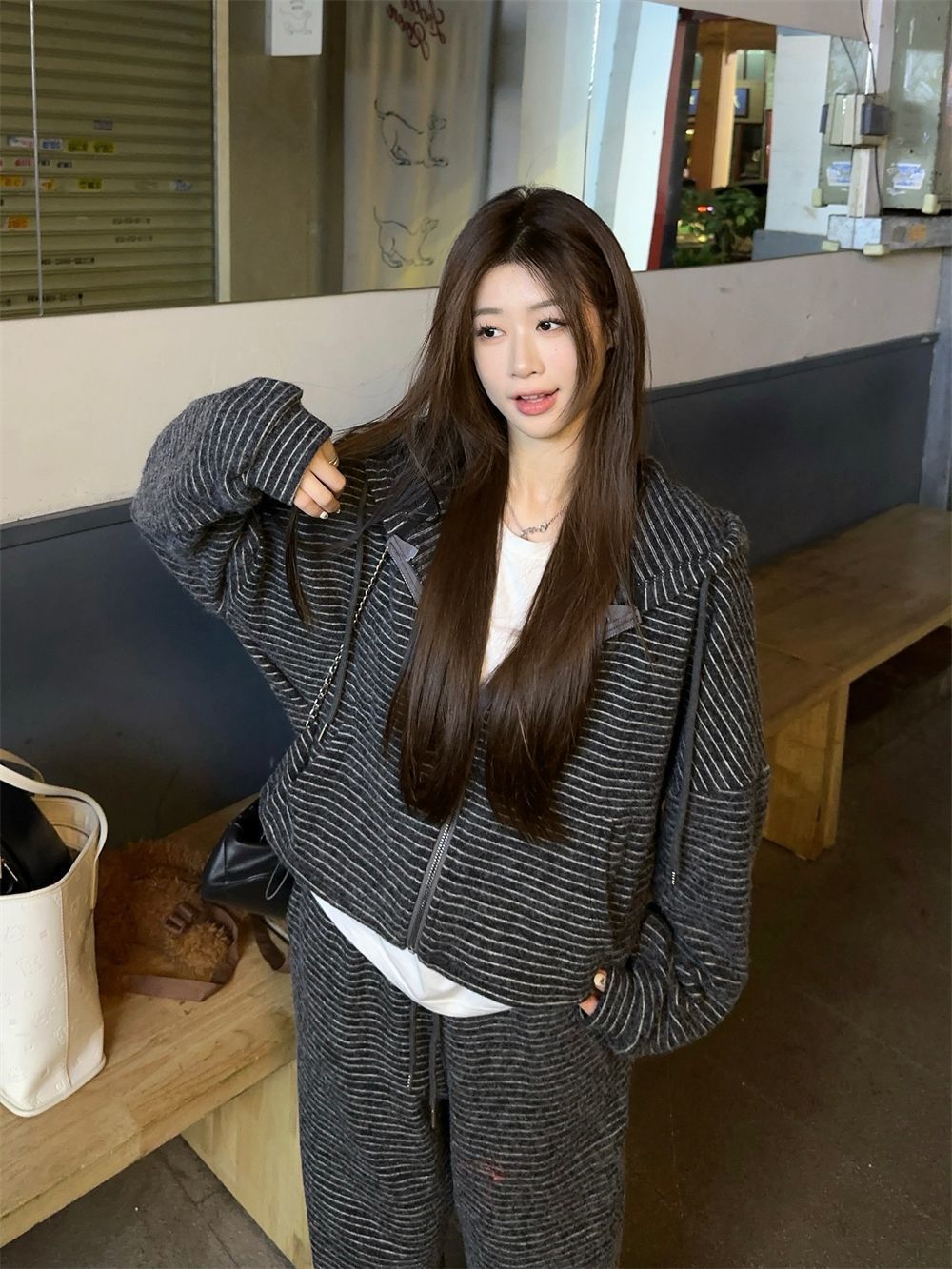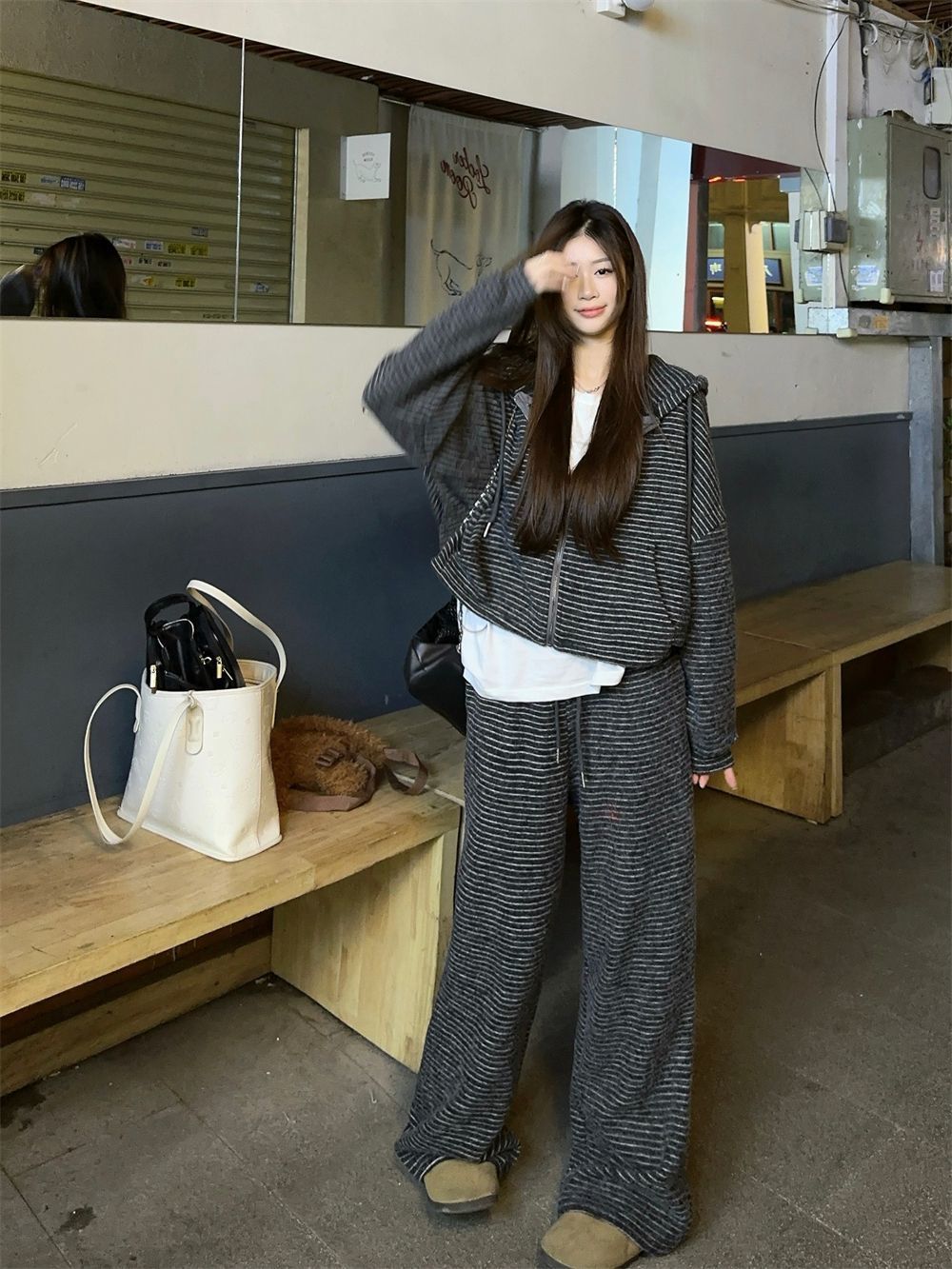 • 스트라이프 탑 + 바지