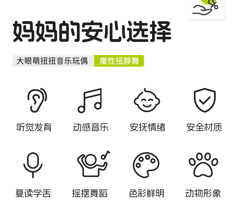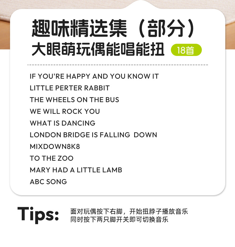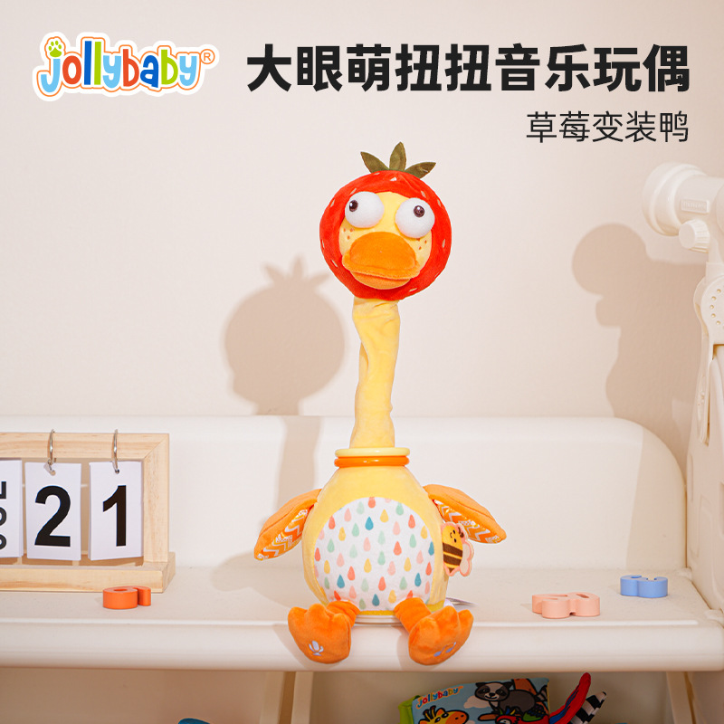 • 큰 눈의 귀여운 트위스트 뮤직 인형 - 딸기 변장 오리