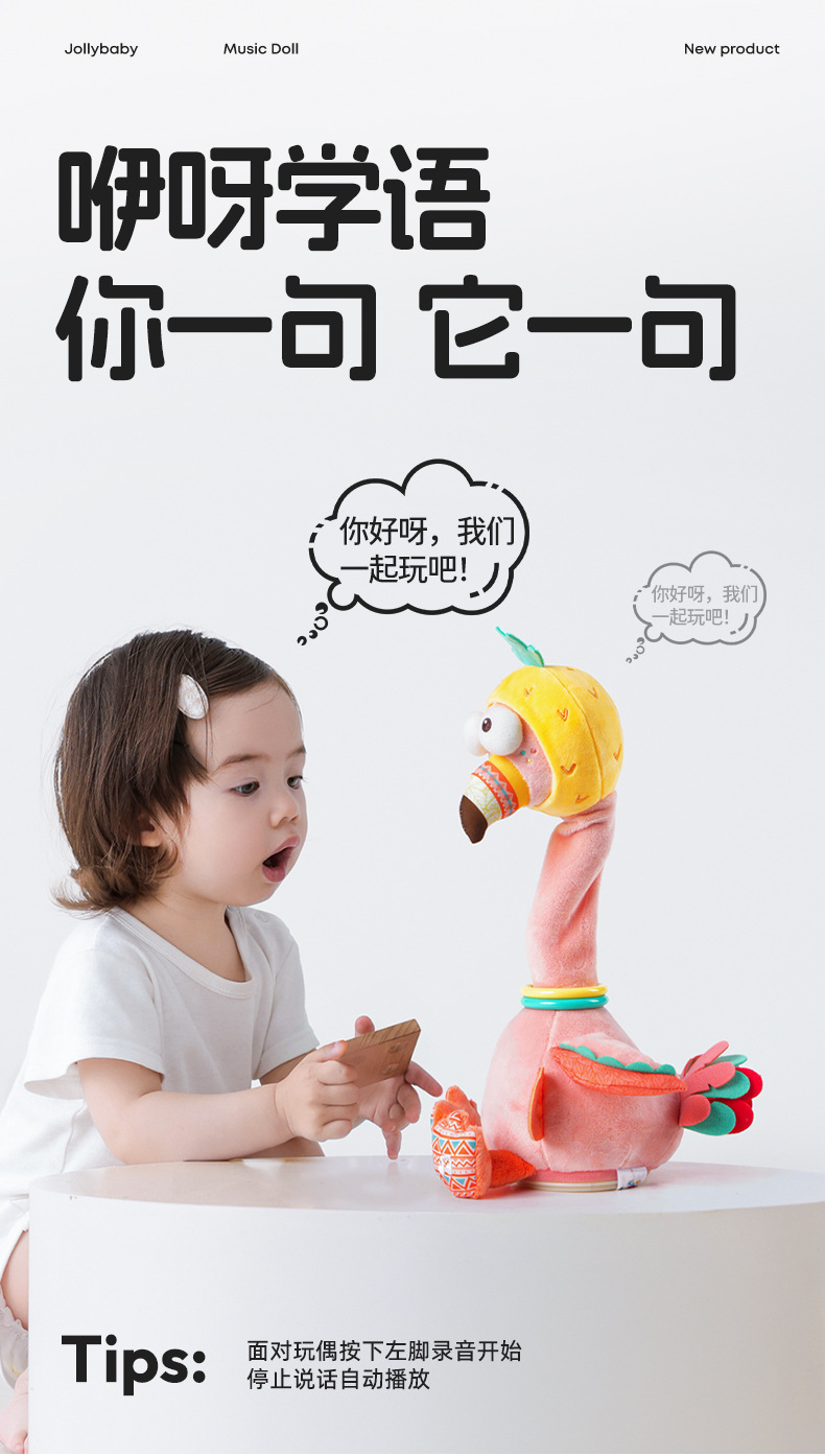 폭발 Jollybaby 다시 읽는 오리 아기 조기 교육 노래 꼬인 목 오리 아기 진정 봉제 장난감을 이야기하는 법을 배웁니다.