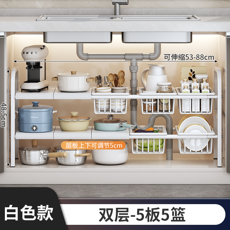 주방 접이식 싱크대 아래 수납 선반, 캐비닛 내부 계층형 선반, 주방 캐비닛 수납, 다기능 냄비 선반 수납, 맞춤형스토어 가기