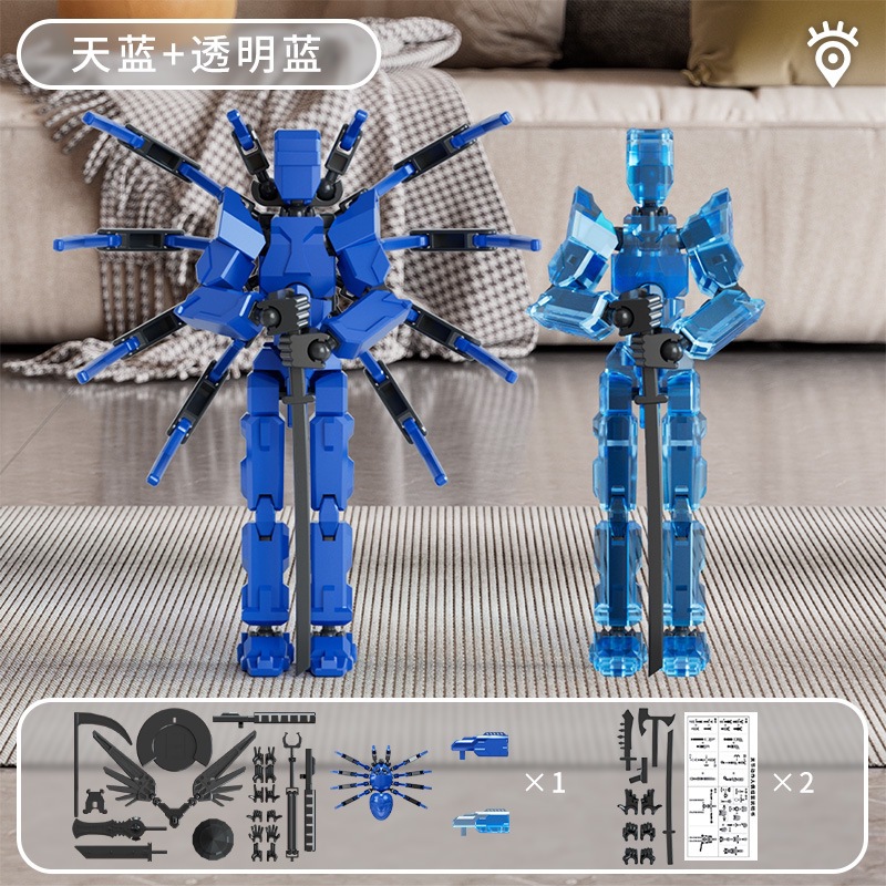 • [2개 팩] 반투명 블루 메카 + 블루 스파이더 메카 인형