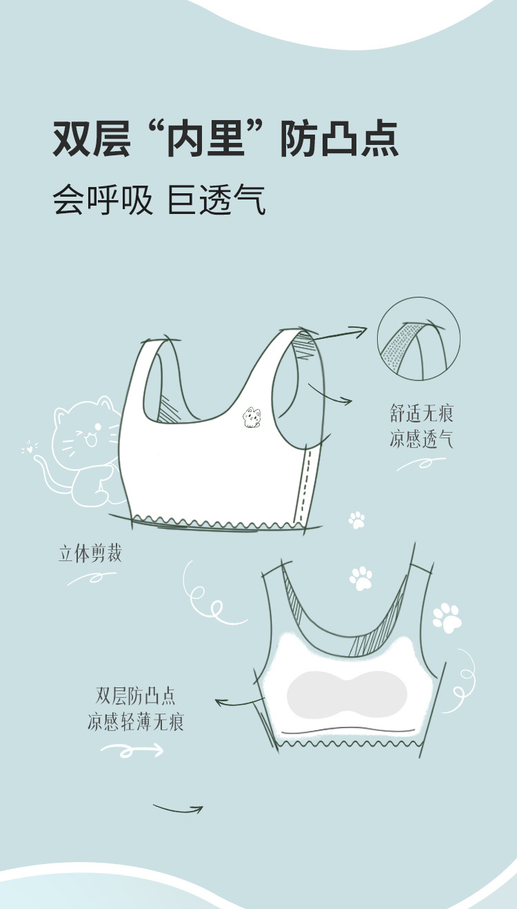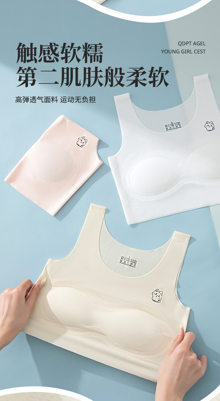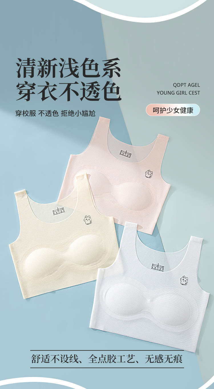Traceless 여자 속옷 개발 기간 얇은 안티 범프 고정 컵 초등학생 중학생 여중생 브래지어 조끼