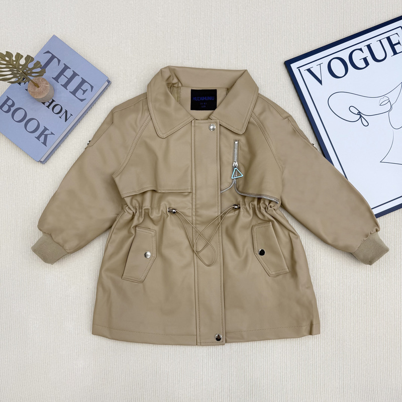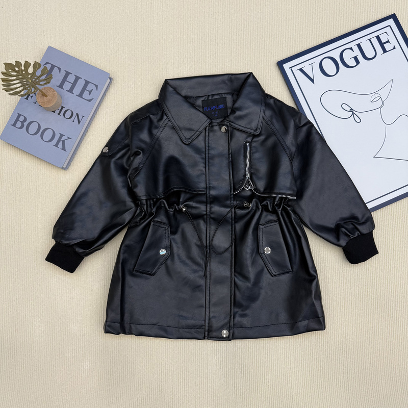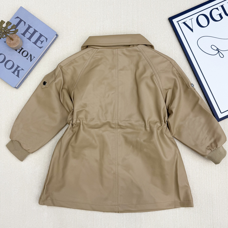 소녀 긴 윈드 브레이커 PU 가죽 2025 봄과 가을 새로운 방풍 플래켓 영국 코트 재고 도매 허리스토어 가기